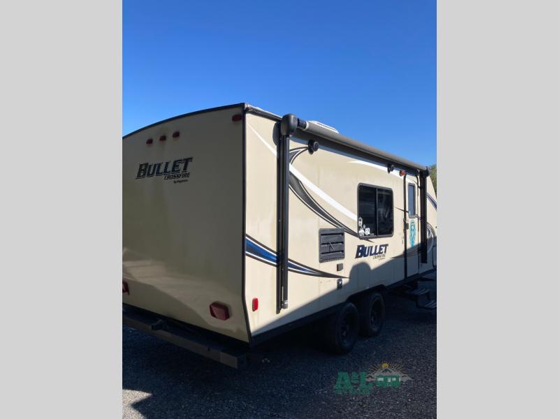 With any Bullet Crossfire by Keystone you will not have to sacrifice a thing while away from home. From the construction with aluminum framed walls, Darco moisture barrier, and E-Z Lube Dexter axles to the quick recovery water heater and air conditioner you will be comfortable on the road, and while camping. You will find interior LED lighting, hardwood cabinet doors, and a Bluetooth stereo with Aux and I-Pod hookup, plus much more! Come check out why the Bullet Crossfire is the talk of the campground!