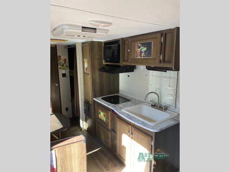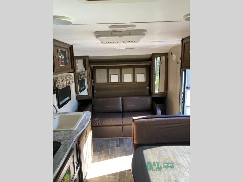 Imagine yourself in the living area while sitting on the sofa. Now imagine yourself sleeping on the Murphy bed while the kiddos are on the rear bunk beds. This convertible area up front allows you to enjoy all the space in the travel trailer exactly how you like it. This Keystone Bullet Crossfire 2070BH also offers a microwave, cooktop, double door refrigerator, and a pantry for making meals while away from home. The full bathroom provides your own tub/shower and facilitates to get cleaned up for your next adventure. You will find storage inside, and outside in the pass-through compartment for your larger items such as camping chairs, an outdoor table, and such. It's time to load up the family and head out now!