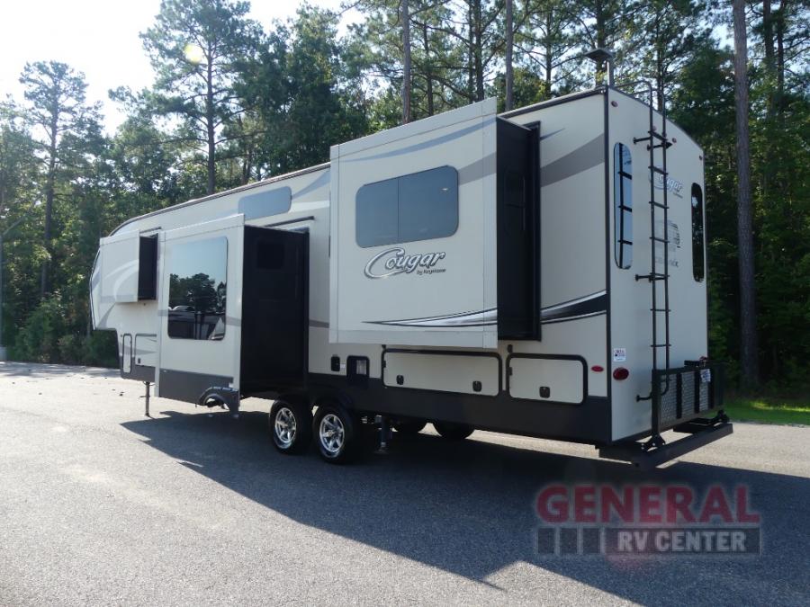 If you enjoy time away from home, you will love your time away in this Keystone Cougar 326RDS fifth wheel. This model features quad slides, a rear entertainment center, and plenty of room to entertain guests.