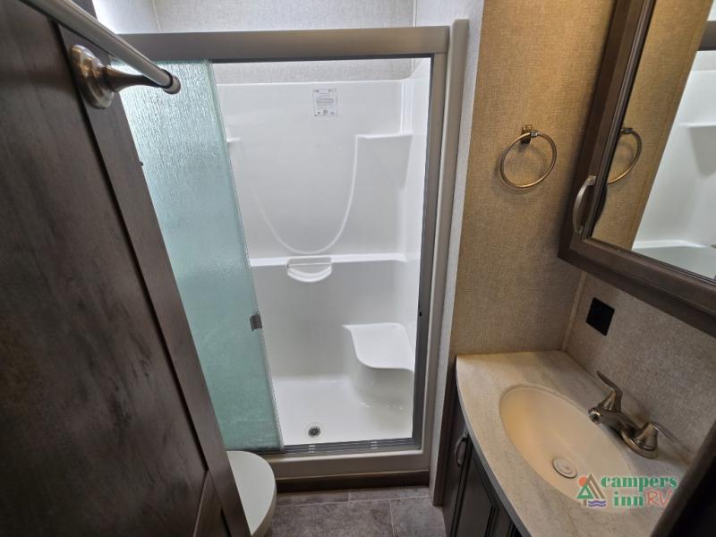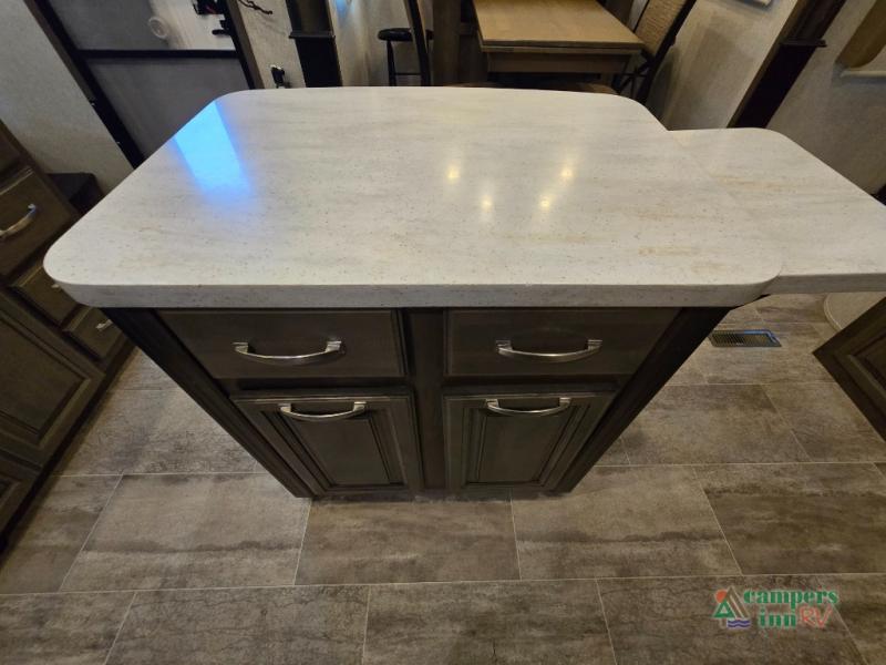 Expands nearly every area of the RV — creating truly spacious living, kitchen, and bedroom zones.