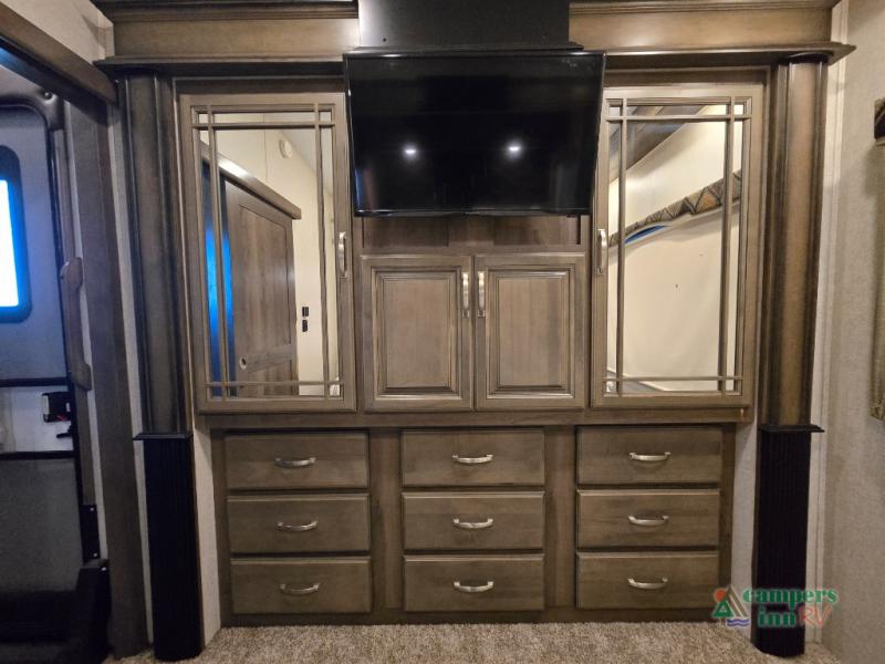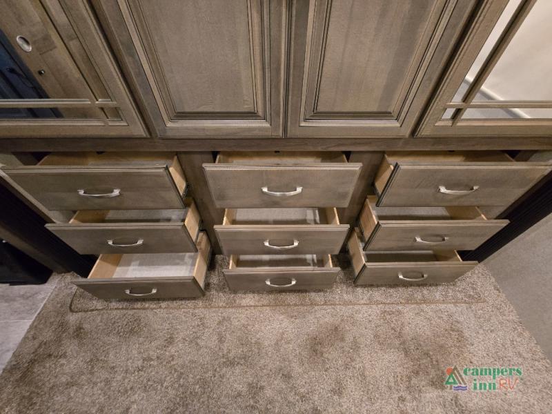 Innovative floorplan maximizing space and function, especially with six slide-outs.