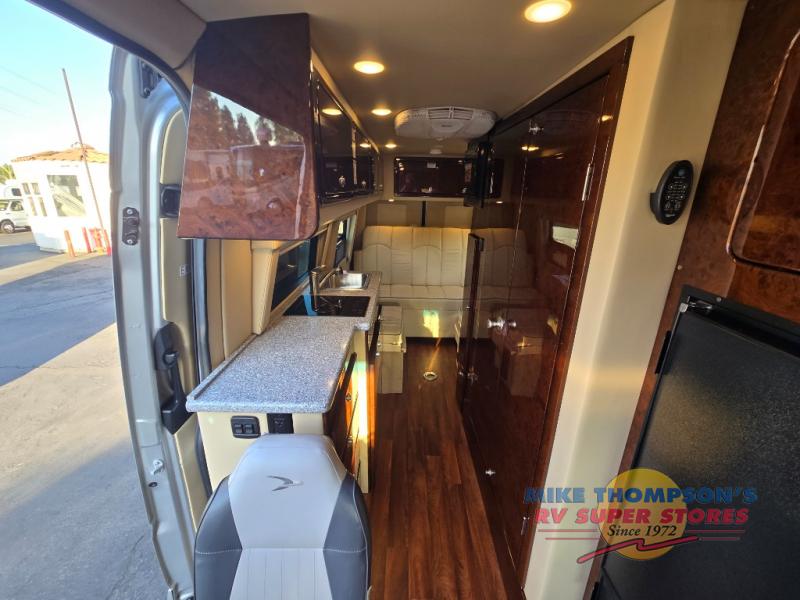 Each Passage class B coach begins with safety and performance engineering of the Mercedes-Benz Sprinter, and includes luxury and convenience throughout. The Suburban tankless water heater offers instant hot water on demand, the convection microwave and induction cooktop allow you to make meals whenever you like, and the 12 Volt/110 Volt refrigerator allows you to store cold items when traveling. The style and comfort of the hand-stitched leather seating, polished wood veneer cabinets and solid surface countertops will impress you every time you take to the road. You also have the convenience of technology with a 100 Watt roof top solar charging system, a HDMI input, USB 12 Volt chargers, and a location prepped for satellite TV, Wi-Fi, and more! Choose your favorite model today!