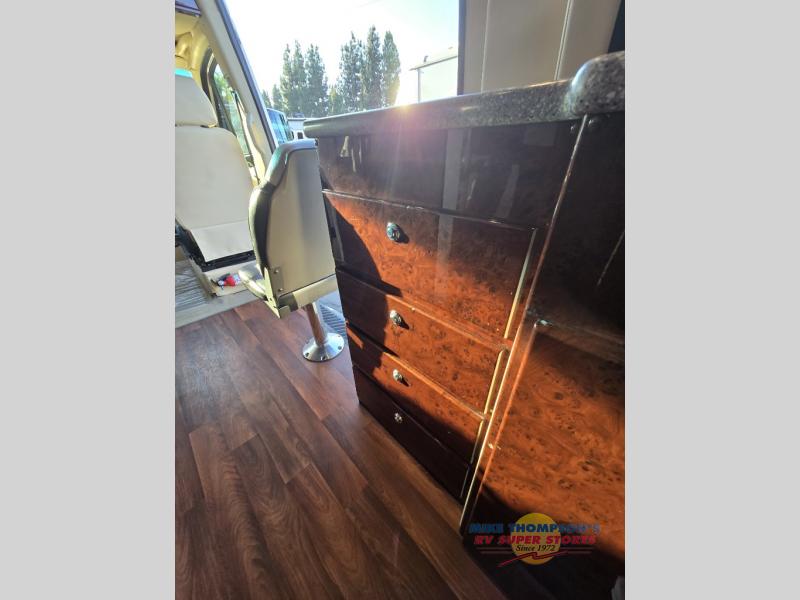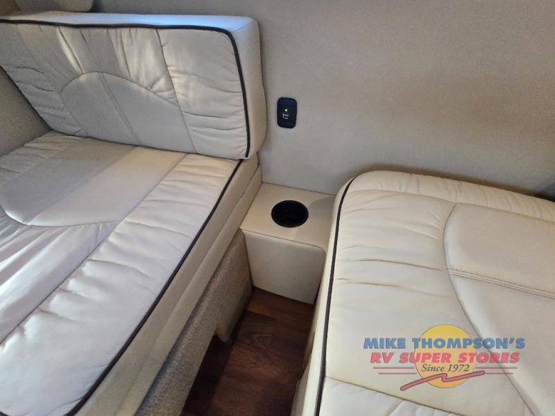 This Passage MD2 Lounge class B diesel will have you daydreaming about your next trip with your spouse. Just imagine relaxing on the rear power lounge with your feet up on one of the side sofas planning your activities. You might have decided to leave the removable table in the back location so you could eat a snack made in the galley. Your spouse might be stretching his legs after he turned the swivel captain chair towards you. There is a wet bath to keep you refreshed and ready for the next day, and the power lounge becomes a sleeping space for two if you decided to skip the hotel stay this trip. Come see what else you will love about this coach when you stop daydreaming and starting traveling!