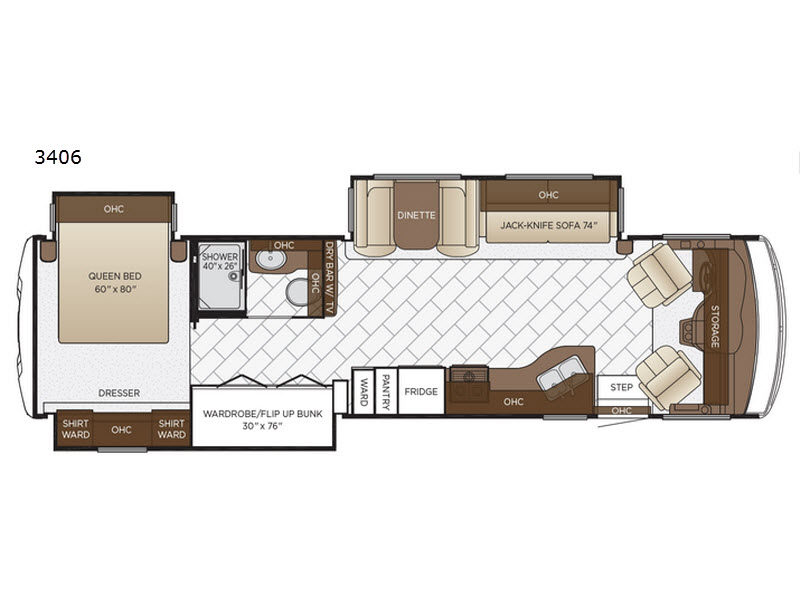 Let this 3406 Bay Star motor home class A take your family of six on a trip of a lifetime! With triple slide outs and a flip up bunk bed there is room for everyone and all of your necessary items. Mom and dad will enjoy the rear bedroom with a queen bed, and in the living area there is a dinette and a 74" jack-knife sofa which can easily convert into additional sleeping space. You will find more seating space at the driver and passenger seats which swivel around once you have reached your camping spot!