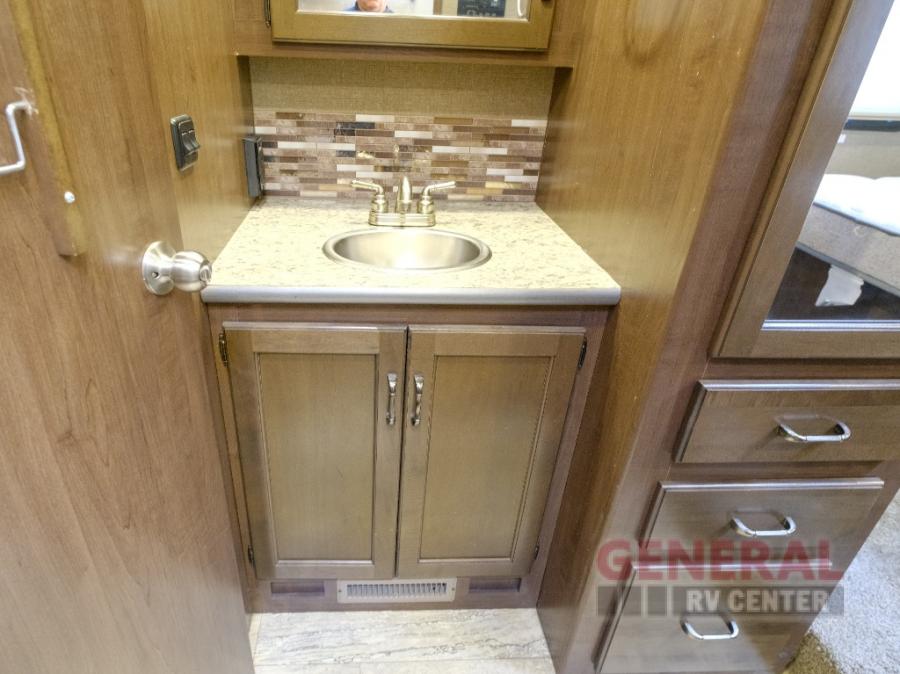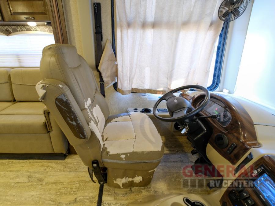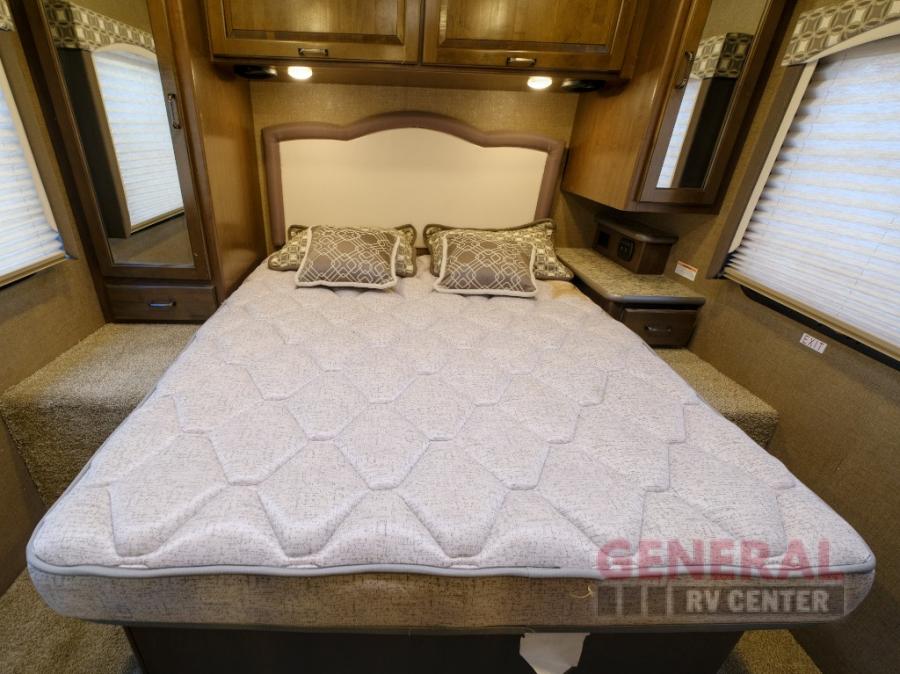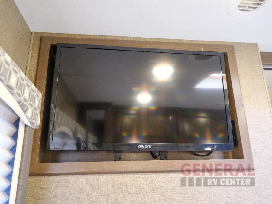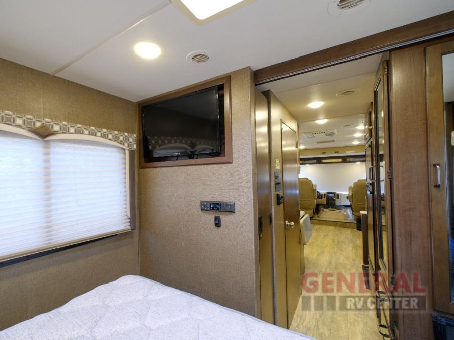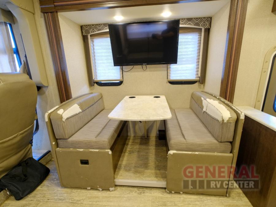 When you are ready for your next trip across the country, choose to do so in style and comfort with this 31Z Hurricane Class A gas motor home by Thor Motor Coach. This model features dual opposing slide outs in the combined kitchen and living area gives you plenty of room for walking around the unit. There are seatbelts for the kids and extra guests while you are on the road. Step up into the rear bedroom, and you will find a queen bed, two wardrobes for your things, and a 32" LED TV for enjoying a movie before bed. Enjoy your next movie night outdoors thanks to the exterior 32" LED TV, just grab the popcorn!