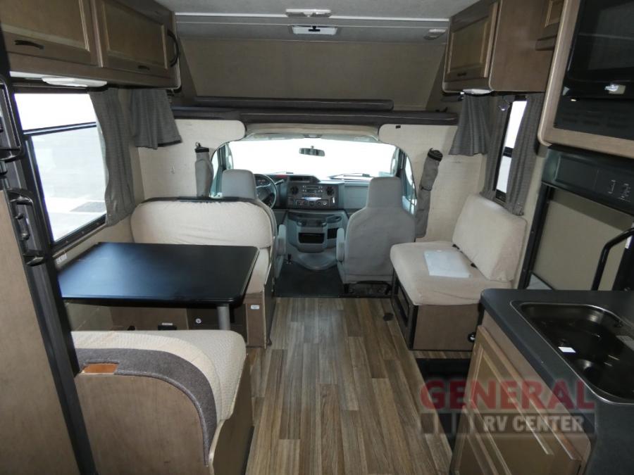 The 2018 Thor Majestic 23A is a compact and easy-to-drive Class C motorhome built on the Ford E-350 chassis, perfect for both first-time RVers and seasoned travelers. At under 25 feet long, it offers excellent maneuverability while still providing sleeping space for up to five people. The interior features a booth dinette that converts to a bed, a rear corner queen bed, and an overhead cab bunk—ideal for families or small groups. The rear corner bathroom includes a shower and toilet, while the kitchen is equipped with a double sink, refrigerator, 3-burner range, and microwave for convenient meal prep on the road.