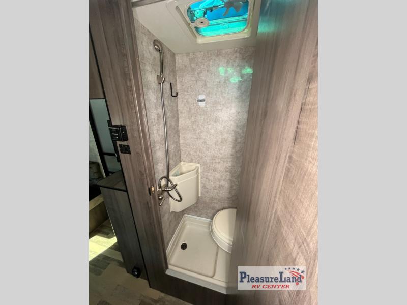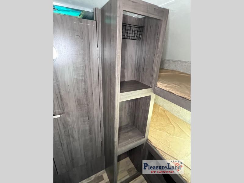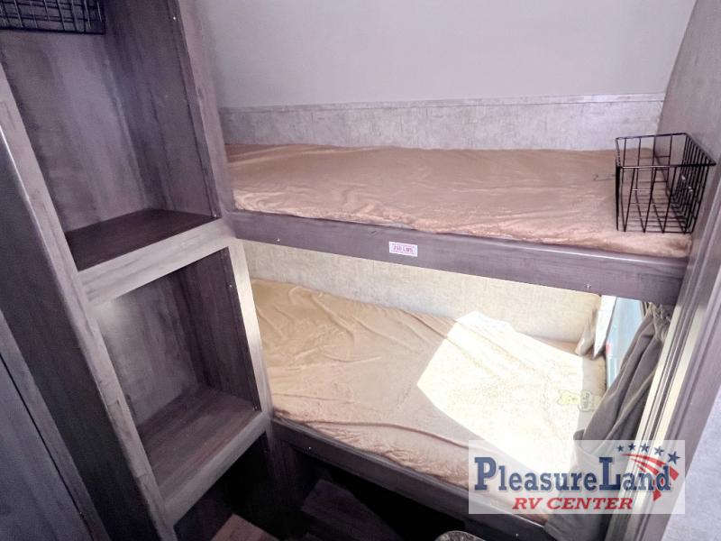Along the curb side you will find a convenient wet bath so you can enjoy an on-board shower and toilet of your own. No running out at night in the dark to the campground bathrooms! And, right next door along the back of the unit the kids will enjoy a set of 30" x 74" bunks for sleeping, or even relaxing during the day for a bit of down time inside.