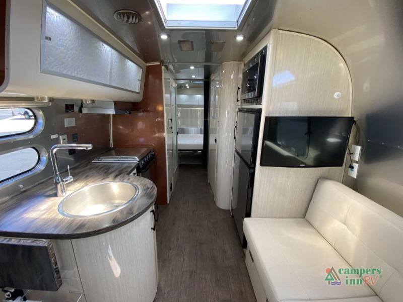 One of the best things about the International Serenity travel trailer is the amount of technology that has been included. From the Samsung LED HDTVs with surround sound and Blu-Ray™ DVD player, to the USB and 110V outlets located throughout, you will always be able to kick back and relax with your favorite modern devices no matter where you go, and even if the climate is unbearable wherever you've decided to travel, the inside of your International Serenity won't be with the help of the Quietstream™ ducted climate control system that quickly cools the cabin at a low noise level. If you find yourself needing a little more air, the Fantastic© Fan with a built-in thermostat and automatic rain sensor will be just the feature you turn to with its ability to open and close automatically when rain begins to fall.