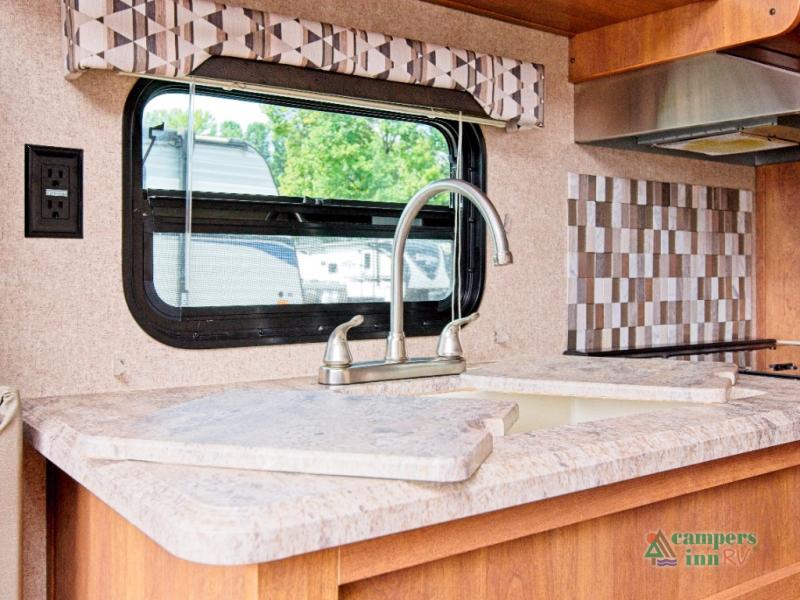Inside, enjoy LED lighting, a residential pull-down kitchen faucet, and a Furrion stereo system with Bluetooth, HDMI, and USB charging. The upgraded in-wall speaker system ensures great sound whether you're relaxing indoors or entertaining outside.