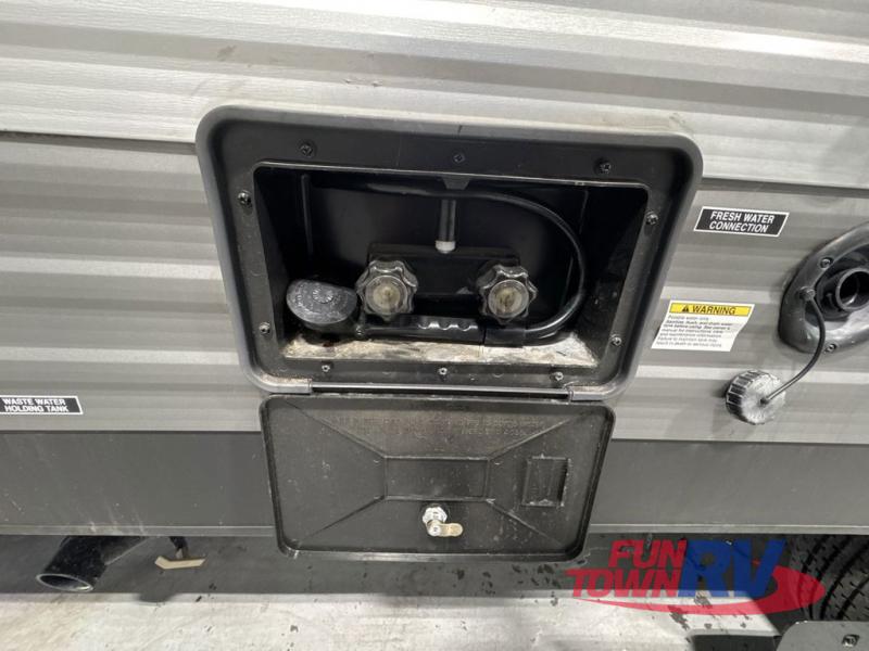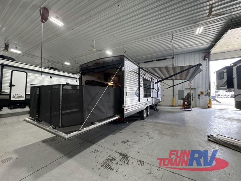 Coachmen RV has done it again with the Catalina Trail Blazer's! These toy hauler travel trailers each have a large ramp door for easy loading and unloading of your toys, plus there is a Toy Lok system that helps to keep everything in place. The exterior utility shower is super helpful after a long day of mudding, which means you can rinse off before dragging mud throughout the trailer. There is also a front diamond plate, back-up camera prep, and a fully enclosed underbelly to ensure safety as you travel. Inside you will love all of the at home features like the LED lighting, the residential pull down faucet to make your clean up easier, and the Furrion DVD/mp3/FM Stereo w/ Bluetooth and USB Charging Port, plus there is an upgraded in-wall speaker system. So, come check out the Coachmen Catalina Trail Blazer toy hauler that best suits you!