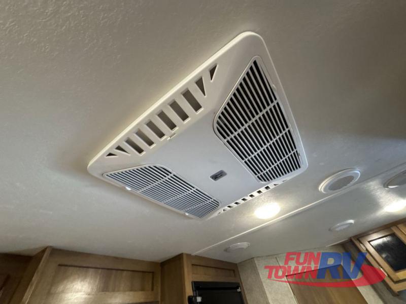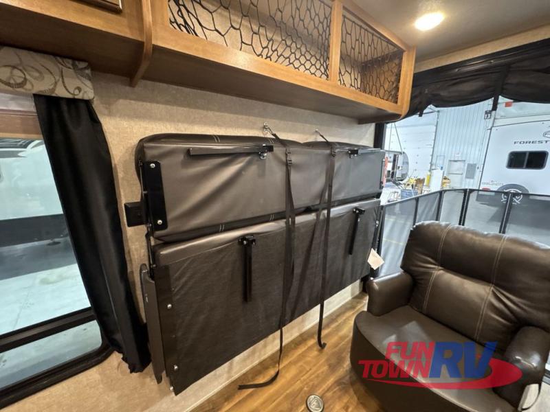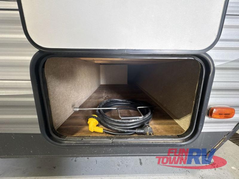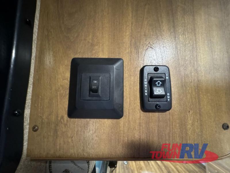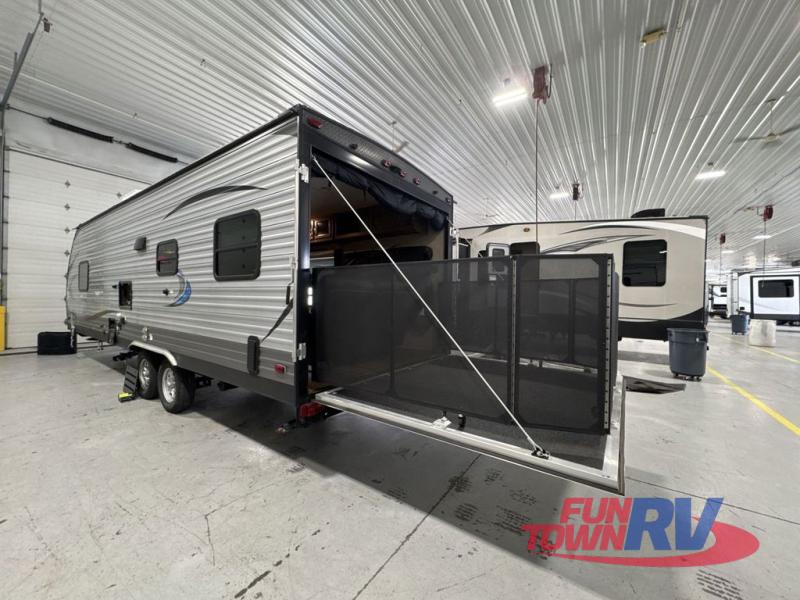 You will love blazing your own trails with the toys you pack inside this Catalina Trail Blazer toy hauler model 26TH. You will love how easy it is to load and unload using the 90" x 74" rear ramp door. If you choose the optional party deck package available then you can create a raised outdoor living space to enjoy when you come in from a fun day of riding or playing. When nightfall arrives, you can fold down the sofa and create added sleeping space for family members or a few added friends. There are also overhead cabinets for your daily dishes and other kitchen items. You will have no trouble whipping up meals and snacks in the fully equipped kitchen to stay fueled for more fun. On the outside, a 15' power awning is great for creating a protected outdoor living space from the wind, sun, and rain. There is also exterior storage in front for all of your outdoor camping gear too!