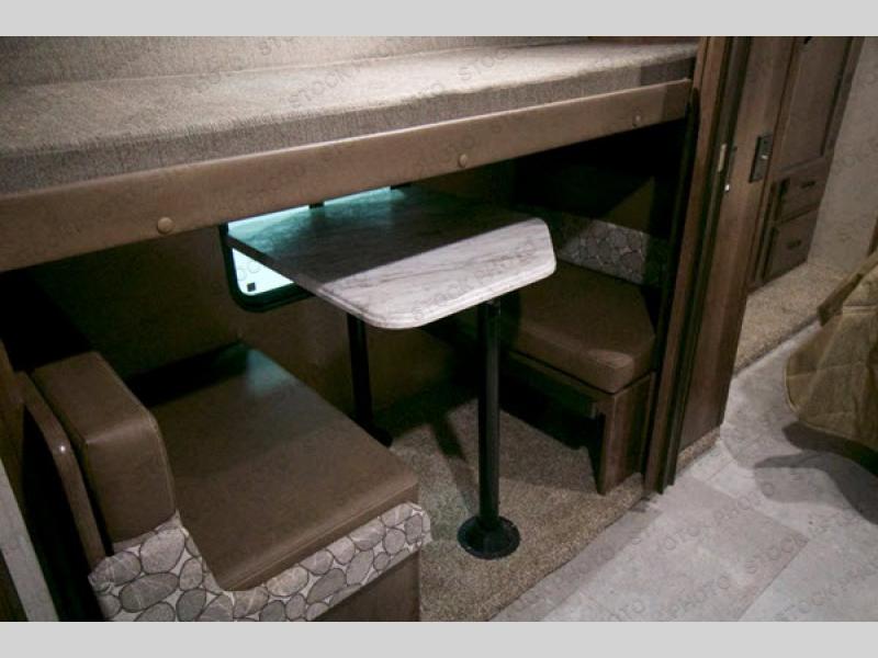 Inside you’ll find a rear private bedroom for the adults, roomy bunk space or versatile areas for kids or guests, and a comfortable living/kitchen zone where meals, relaxing and socializing happen. The dual slide-outs expand the interior significantly, and the built-on a Ford E-450 chassis, this coach is ready for weekend getaways or longer adventures.