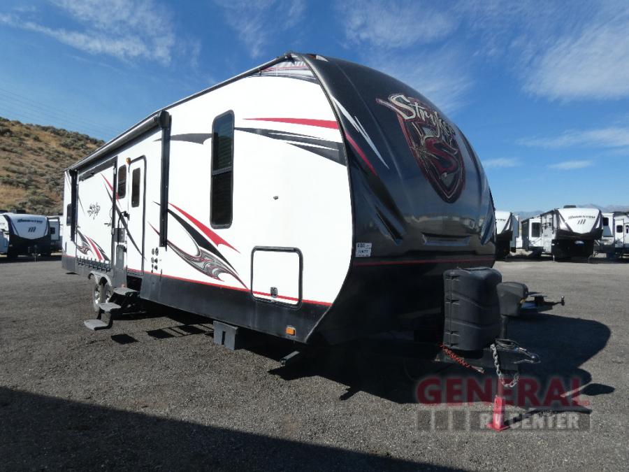 The Stryker toy hauler by Cruiser RV is all about family fun! With its functionality, design, and innovation, the Stryker was created with you in mind, and because the Stryker has a wide-body foundation, you will be able to bring along your biggest off-road toys. With deluxe additions like the residential furniture and designer accent walls, the interior portion of the Stryker is just as breathtaking as the high-gloss premium fiberglass exterior.