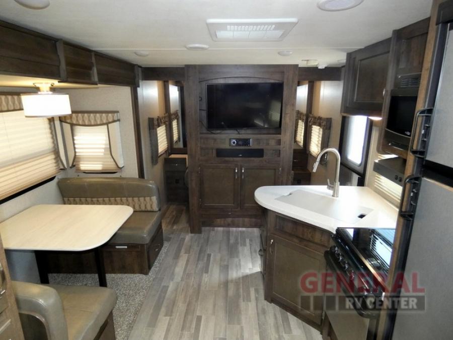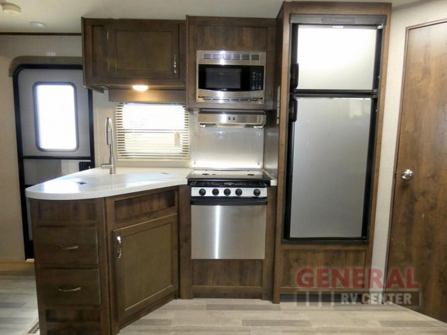 With the Dutchmen Aerolite travel trailer, you will always find exceptional interior comforts, like the 6' 10" ceiling height that delivers a residential feel, the stainless steel appliances, and the LED lighting throughout. The family will enjoy listening to the superb quality coming from the Jensen soundbar, and you will be thoroughly impressed by the iN-Command control system that allows you to monitor and change various electrical functions throughout the Aerolite with the ease of your smart phone.