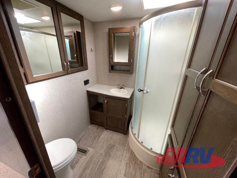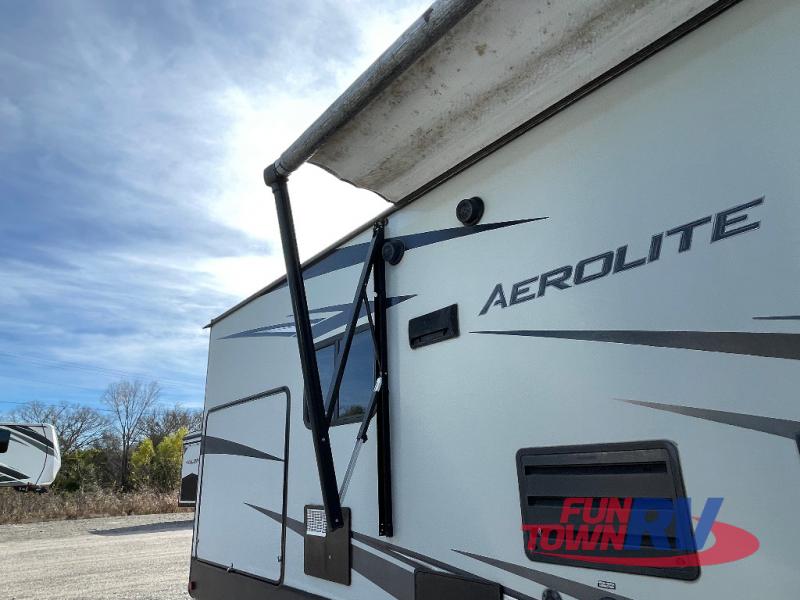 With the Dutchmen Aerolite travel trailer, you will always find exceptional interior comforts, like the 6' 10" ceiling height that delivers a residential feel, the stainless steel appliances, and the LED lighting throughout. The family will enjoy listening to the superb quality coming from the Jensen soundbar, and you will be thoroughly impressed by the iN-Command control system that allows you to monitor and change various electrical functions throughout the Aerolite with the ease of your smart phone. And the Industry-Best 3-year limited structural warranty that comes with each Aerolite allows you to enjoy your travel trailer for years to come!
