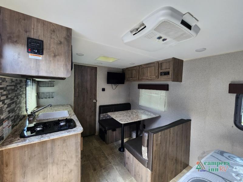 This Aspen Trail LE Series travel trailer is perfect for a couple or smaller family that enjoys traveling with their own accommodations. Just imagine fishing with your spouse in the early morning after waking up at your favorite campsite. Or imagine waking up your child that has slept on the dinette. This model 1800RB allows you to sleep in a comfortable bed, drink your coffee at the dinette, and get cleaned up in a full bathroom. Having full bathroom and kitchen amenities allows you to travel to all your favorite fishing holes in comfort. Take a look, you will be hooked!