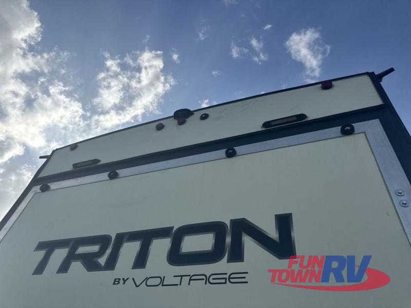 With any Voltage Triton toy hauler by Dutchmen RV, you will enjoy the luxurious interior, as well as the fabulous garage features that include a spring assist ramp door, a 30 gallon fuel station to keep your toys fueled all weekend long, Tuff Ply flooring for durability, and 2,500 lb tie downs to secure your toys while on the go. Inside each model you will find an LCD HDTV, upgraded residential furniture, solid surface countertops, and a stainless steel kitchen sink. It's time to stop dreaming about adventure and luxury and start living it!