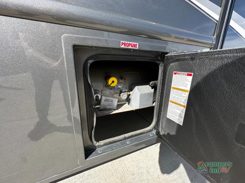 The dark tinted, frameless windows, full-body paint, and contemporary interior design all play a part in creating an impressive coach such as the Dynamax isata 3 motorhome. You will love the beautiful interiors that feature family-friendly and functional living spaces, and the LED flush-mount lighting on the ceiling will illuminate the entire coach and accentuate even the smallest of details that have been incorporated into these models, like the premium vinyl flooring and Italian ultralight poplar cabinetry. The water filtration system that has been incorporated into the isata 3 will ensure that you are always getting the freshest supply of water for however you intend to use it, and you will enjoy using the exterior portion of the isata 3 for all of your late-night campfires because of the exterior speakers, electric awning with LED lights, and exterior shower.