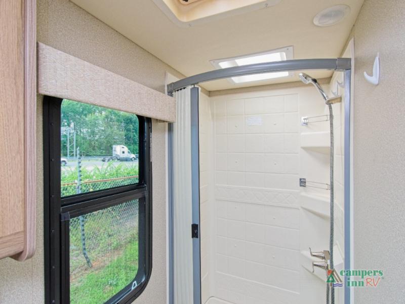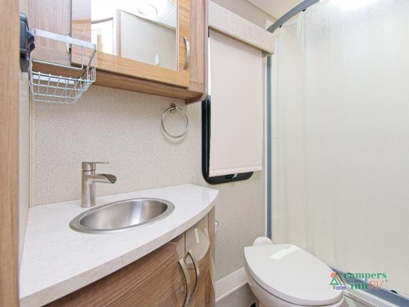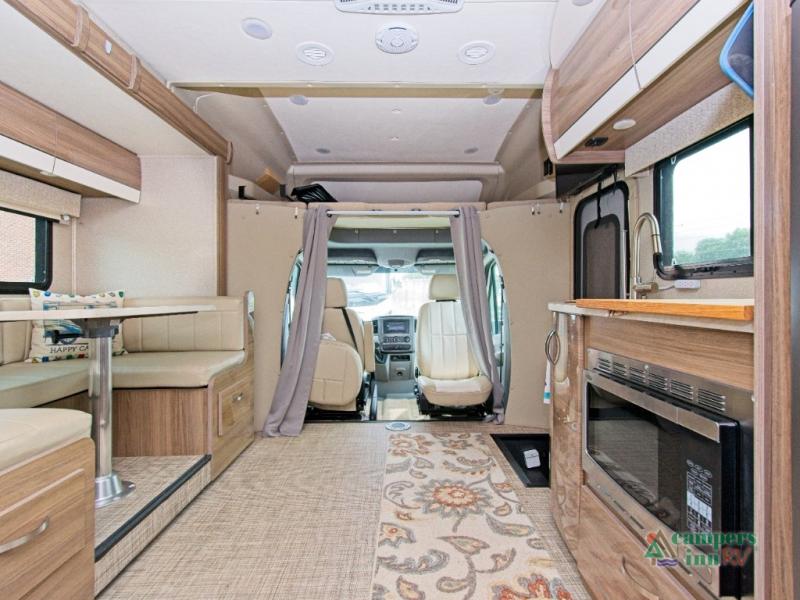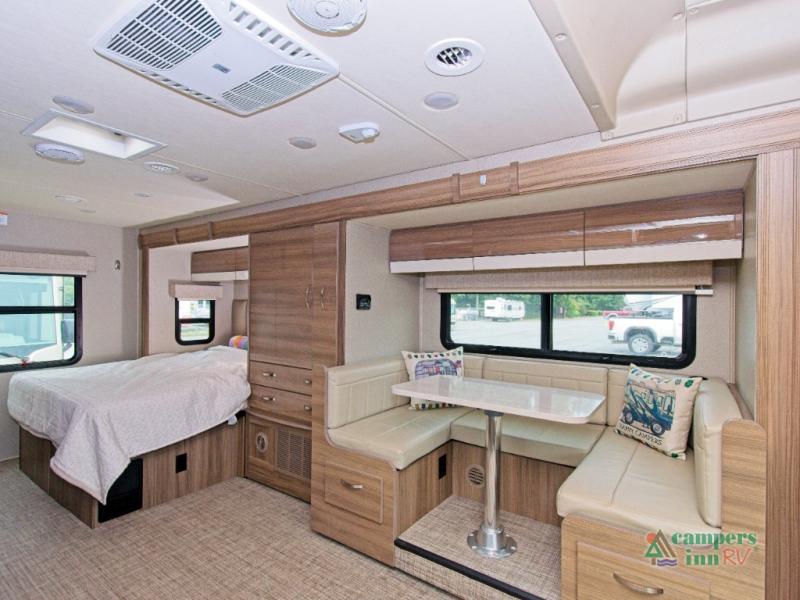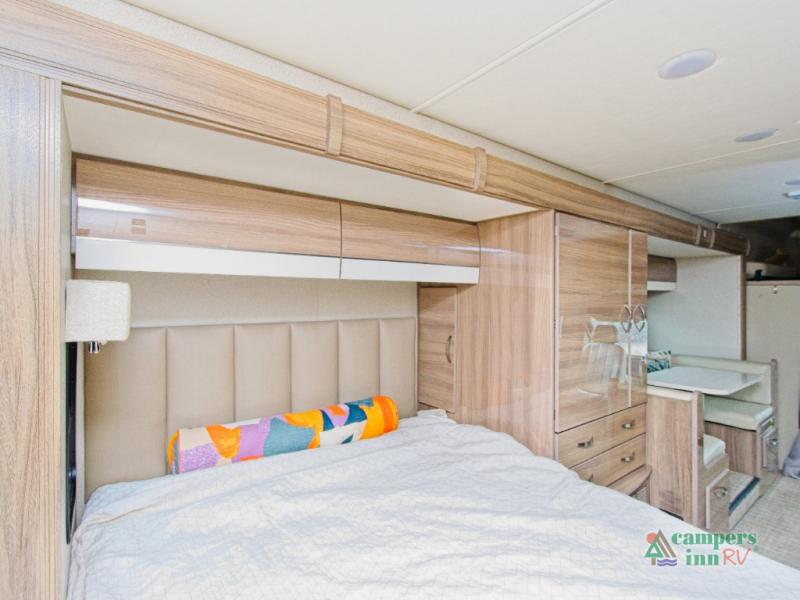 Step inside and be greeted by woven vinyl flooring that adds elegance and durability, paired with Ultraleather seating for a luxurious touch. Recessed LED ceiling lights create a warm ambiance, and day/night roller shades let you control natural light with ease.