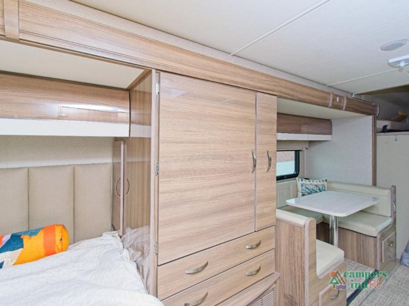 Enjoy cooking on the road with a 2-burner cooktop, 6 cu. ft. refrigerator, and a spacious kitchen pantry for all your ingredients. The large wardrobe ensures you never have to leave essentials behind, while the 32" LED TV in the living area keeps everyone entertained—even the driver can join in the fun thanks to its smart placement.