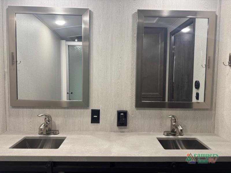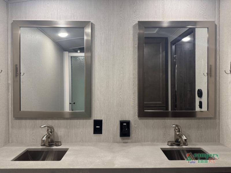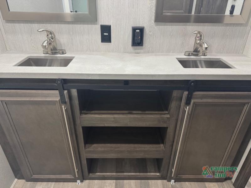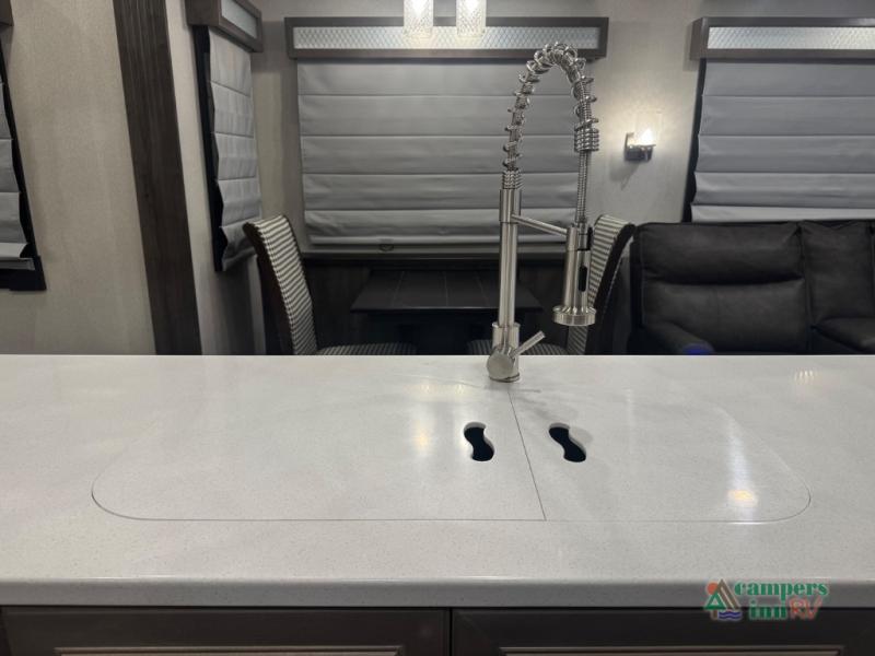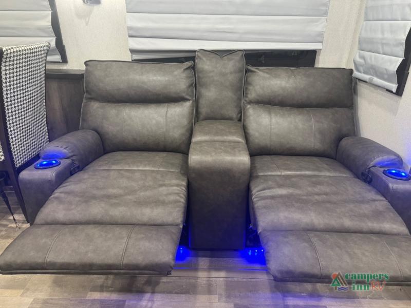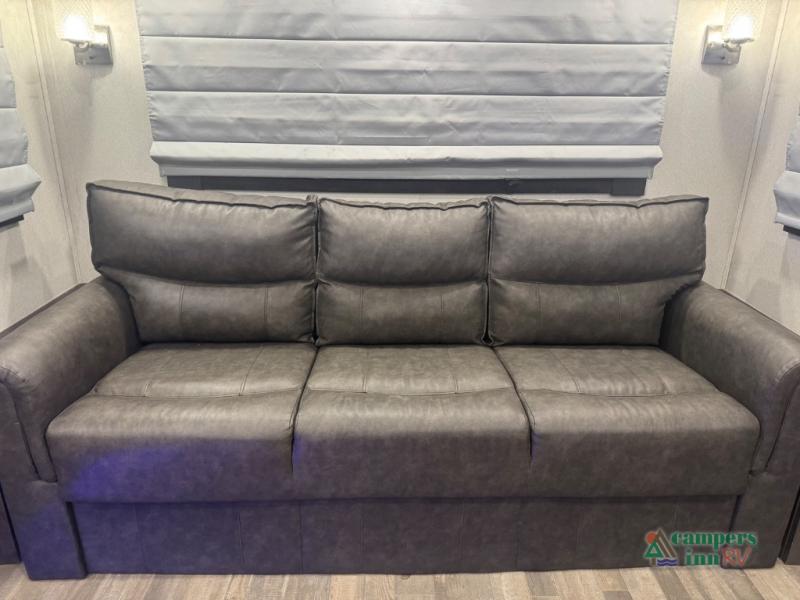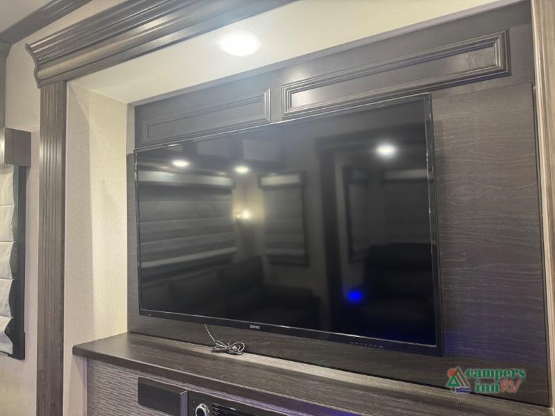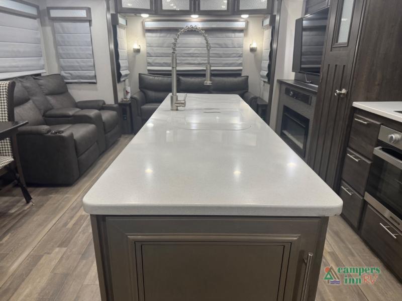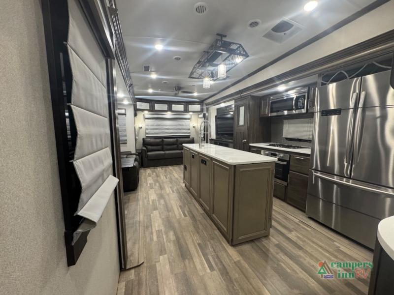 Forest River Cardinal Luxury 3456RLX fifth wheel highlights: Kitchen Island Double Vanity Sink Hide-A-Bed Sofa King Bed Hutch If you want a home away from home, then choose this Cardinal Luxury 3456RLX fifth wheel by Forest River! You will find true comforts throughout from the triple slide outs and the electric fireplace, to the 80" hide-a-bed sofa and the stainless steel residential refrigerator. Grab a drink and snack from the pantry and enjoy watching your favorite movie on the 50" LED TV at the entertainment center while relaxing on the cozy theater seating. Throughout this unit there is plenty of storage options between the hutch in the kitchen, a closet in the hallway, the linen closet in the bathroom, and the wardrobe, dresser, and closet in the front private bedroom, plus there are lots of overhead cabinets too. With the double vanity sinks, it is easier than ever to get ready for the day in the bathroom. At night, you can dive into the king-size Denver mattress and enjoy a great night's rest! In any Cardinal Luxury fifth wheel you will find comfort and conveniences both inside and out as these units were built with your enjoyment in mind. Each unit features an all welded aluminum super structure frame and includes an Alpha Super Flex II TPO roof. Each Cardinal Luxury model also has a wide body construction along with three to five slides to provide you with maximum space inside for 100% enjoyment with your family and friends. You will love the cathedral ceilings for added interior height, plenty of closets to keep all of your clothing, and beautiful Shaw lino throughout. You will also appreciate the at-home touches inside that give each unit a luxurious feel like the crown molding ceiling and cabinet trim, an electric fireplace, and pendant lighting in the kitchen area. The outside of each coach also has a high end look with its premium high-gloss gel coat fiberglass that you have the option of choosing in one of four full body paint color schemes!