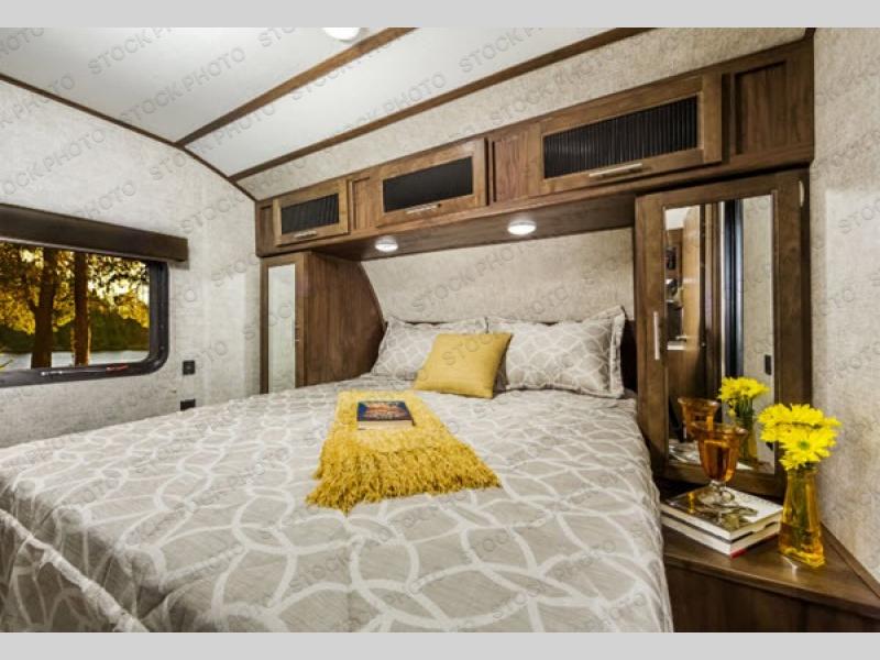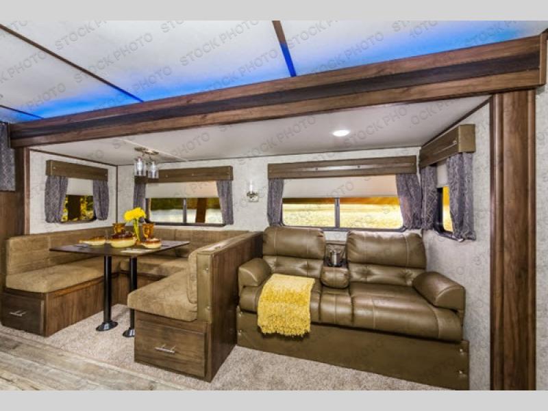 Forest River’s Alpha Wolf series is known for its quality and reliability. The 2019 model features laminated exterior walls, weather-resistant insulation, and a one-piece seamless roof designed for long-lasting performance. The power awning with LED lights, dual entry doors, and power tongue jack make setup a breeze—so you can spend less time working and more time making memories.