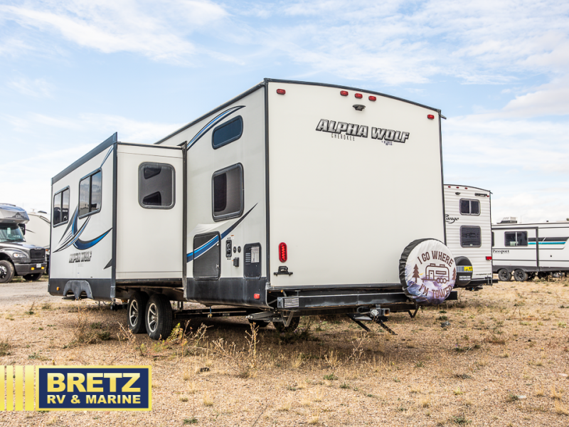 For the ultimate outdoor getaway that your family will talk about for years to come, you need this Cherokee Alpha Wolf travel trailer. With its ability to sleep nine people comfortably each night, this unit is a vital part of any summer vacation, and because this model contains both a private bunkhouse and a master suite, everyone will have their own separate living area. As you play outside in the hot sun and work up a sweat, you will appreciate being able to easily grab an icy cold beverage from the double-door refrigerator in the outdoor kitchen, and the 20' awning will provide shade whenever you need to take a break and cool down.