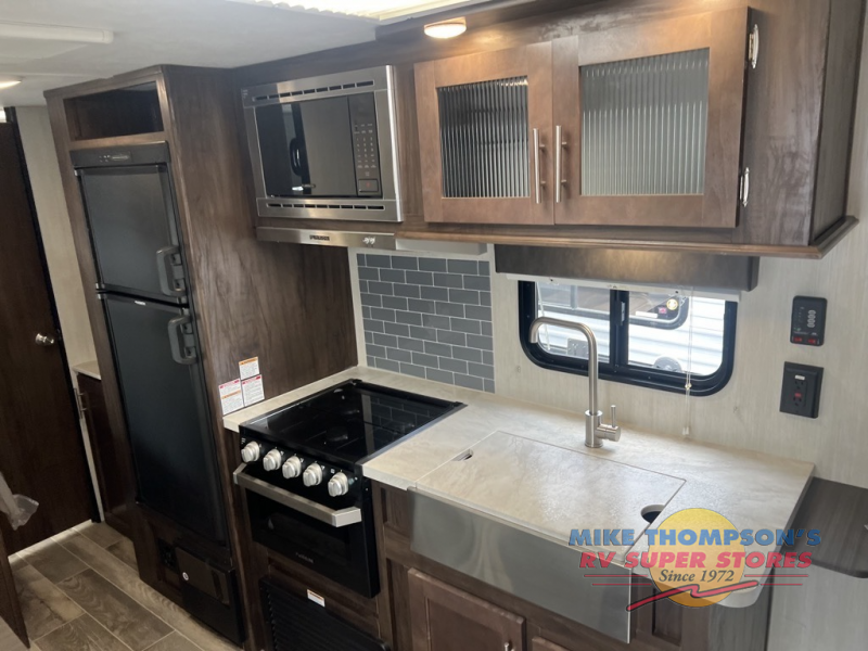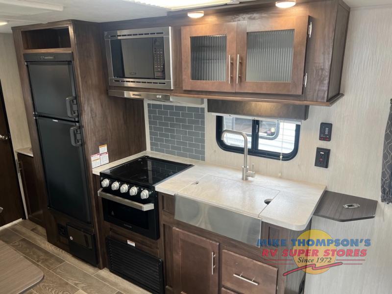 All Forest River Cherokee Grey Wolf models are quality built with distinct features and superior comfort in mind, and they are all set at an affordable price point. So, when you get the opportunity to escape the hustle and bustle of everyday life to enjoy all the beauty and wonder that an outdoor adventure holds, the Cherokee Grey Wolf is ready and waiting to help you relax and unwind. Each unit features an outdoor shower with hot and cold water for you to get cleaned up without tracking mud throughout after your adventurous hike, and with the RVQ quick connect, you can easily hook up a low-pressure grill to cook up your best burgers outdoors. Inside, you will enjoy the HDMI entertainment center, the LED lighting throughout, and a kitchen skylight with a shade, and if you get tired of being indoors during inclement weather, the outdoor power awning will provide protection.