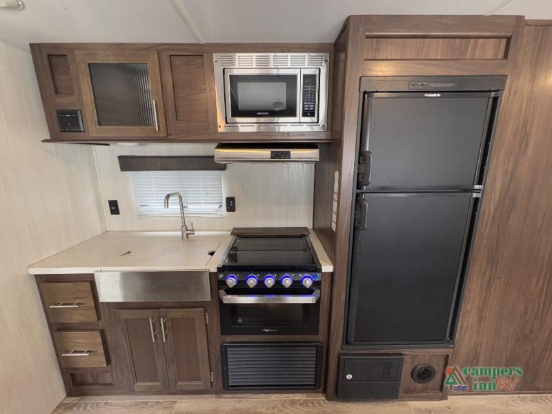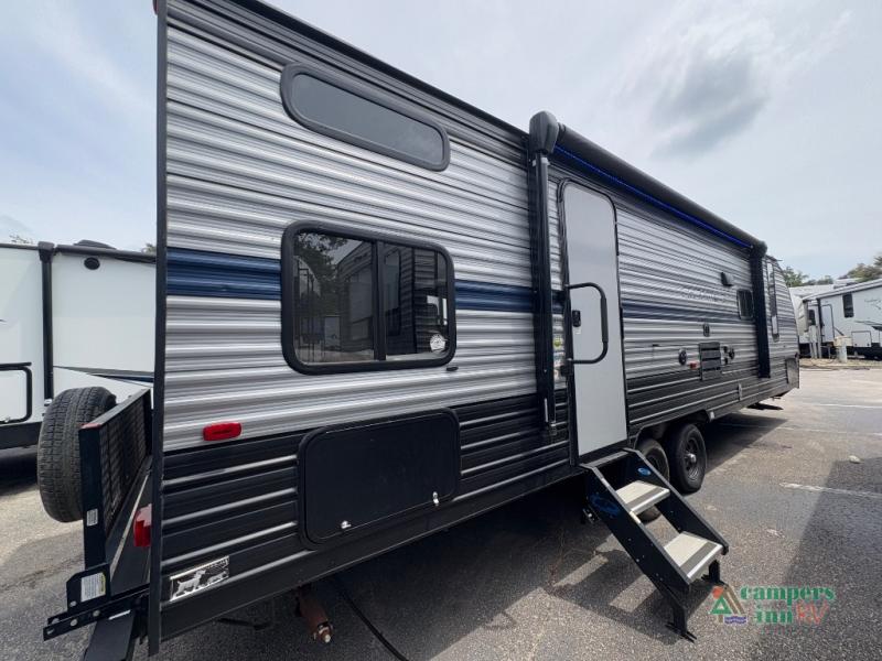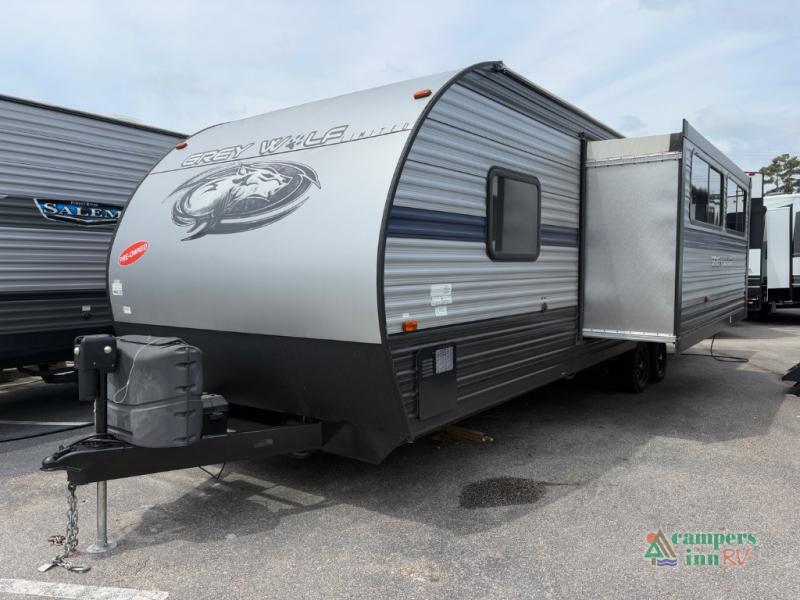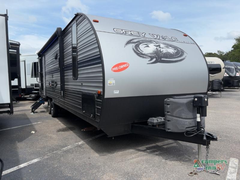 All Forest River Cherokee Grey Wolf models are quality built with distinct features and superior comfort in mind, and they are all set at an affordable price point. So, when you get the opportunity to escape the hustle and bustle of everyday life to enjoy all the beauty and wonder that an outdoor adventure holds, the Cherokee Grey Wolf is ready and waiting to help you relax and unwind. Each unit features an outdoor shower with hot and cold water for you to get cleaned up without tracking mud throughout after your adventurous hike, and with the RVQ quick connect, you can easily hook up a low-pressure grill to cook up your best burgers outdoors. Inside, you will enjoy the HDMI entertainment center, the LED lighting throughout, and a kitchen skylight with a shade, and if you get tired of being indoors during inclement weather, the outdoor power awning will provide protection.