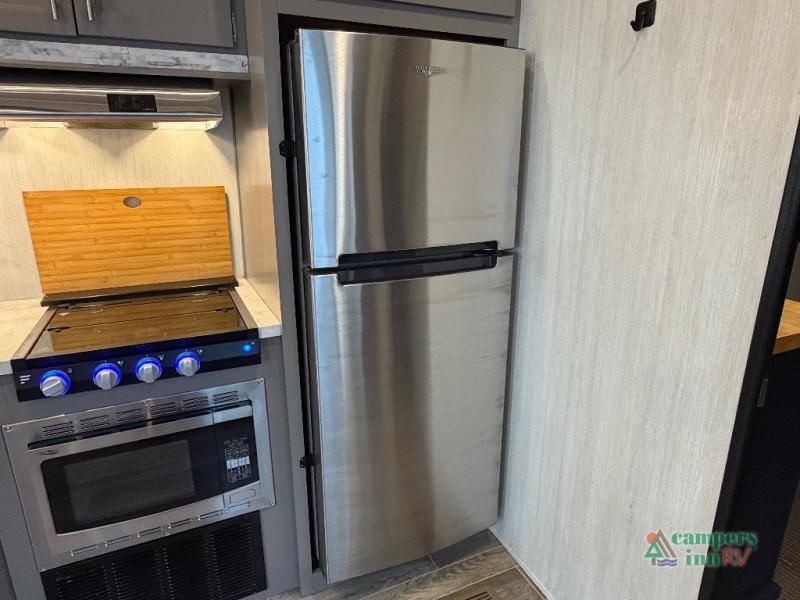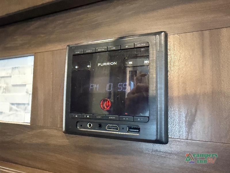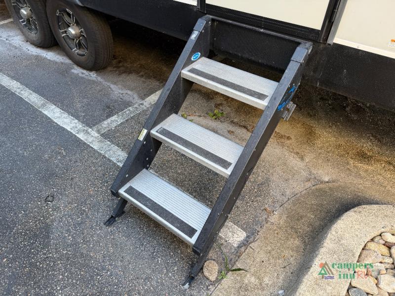 Spend your evenings under the 21' power awning while your extra camping gear stays organized in the pass-through storage compartment. An exterior shower lets you clean up before heading inside, keeping the RV fresh and tidy throughout your stay.