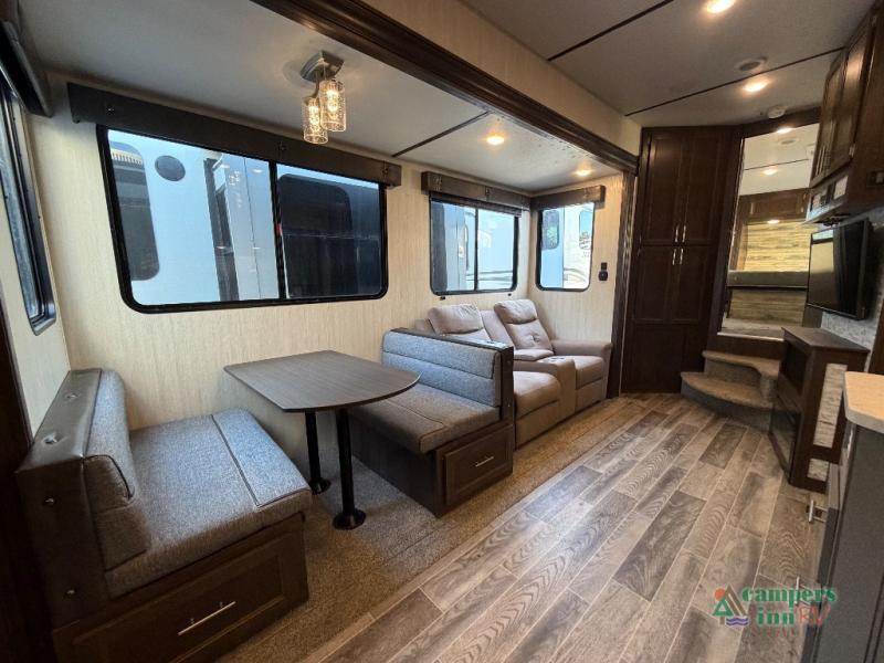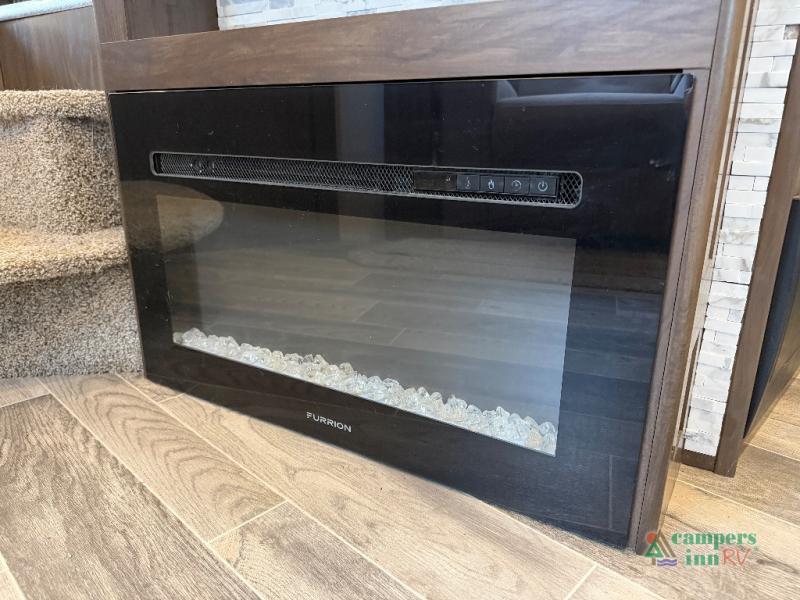 After a day on the trails, relax inside the warm and inviting living space featuring a cozy fireplace. The front master suite includes a queen bed with storage below and direct access to the full bath, giving you a comfortable retreat at the end of the day.