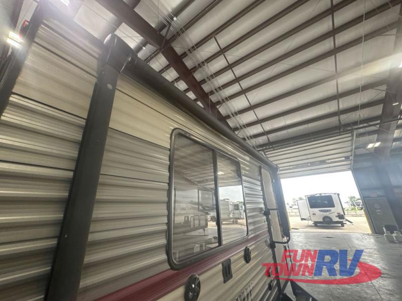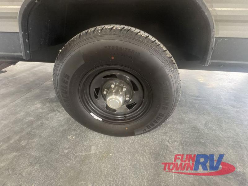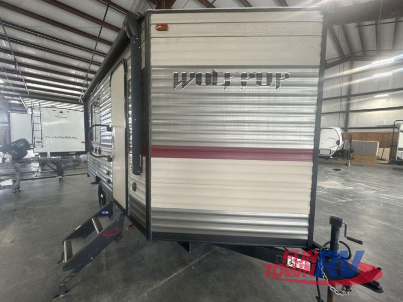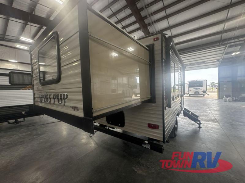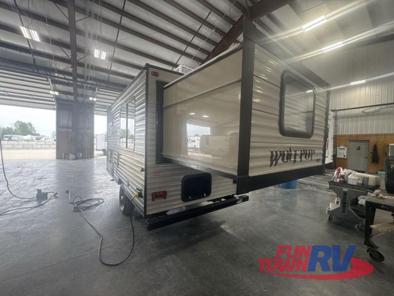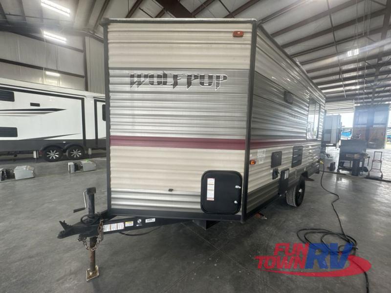 When you choose to camp with a Cherokee Wolf Pup travel trailer, or the toy hauler, you are getting an easily towable lightweight trailer as well as ample room throughout each model. The aerodynamic radius front profile allows for better gas mileage, and the one-piece walkable decked roof allows you to easily clean off the top of your unit after a weekend trip. You'll enjoy features such as an awning with an LED light strip, a high-gloss seamless countertop, and an outside shower with hot and cold water, plus more! With a carbon monoxide detector, safety glass windows, and a smoke detector in each unit, these travel trailers and toy hauler have been constructed with your family's safety in mind. Come select your favorite Wolf Pup model today!