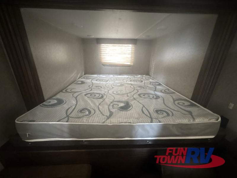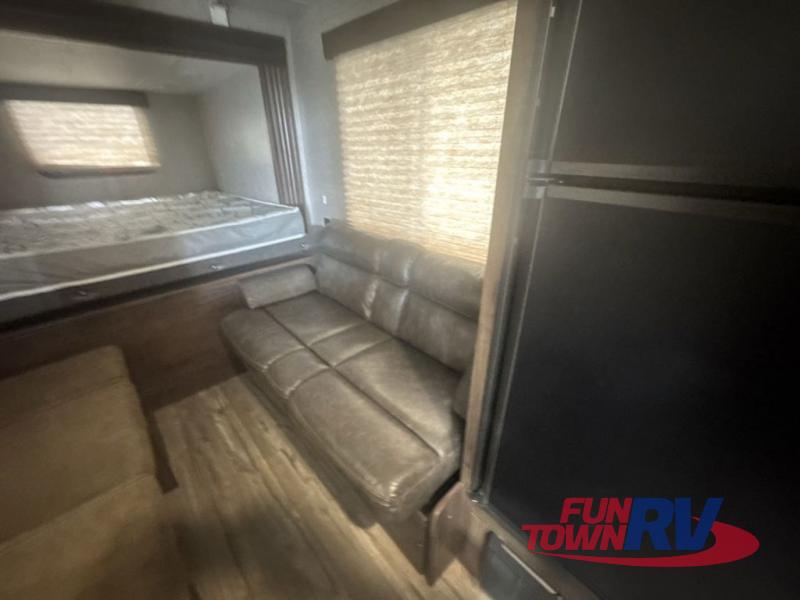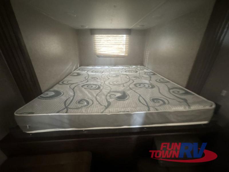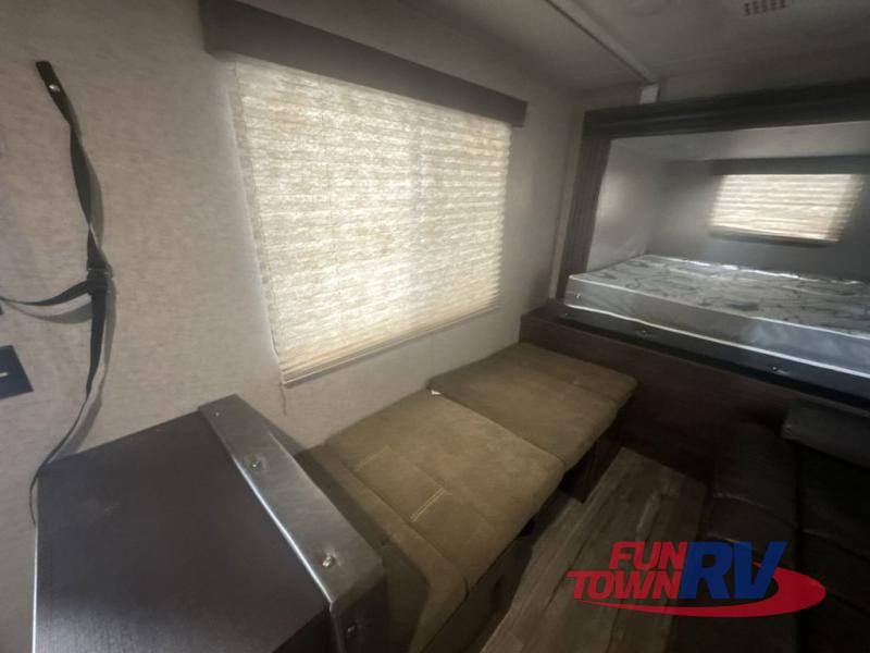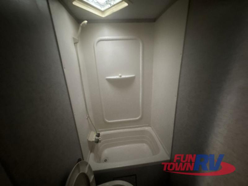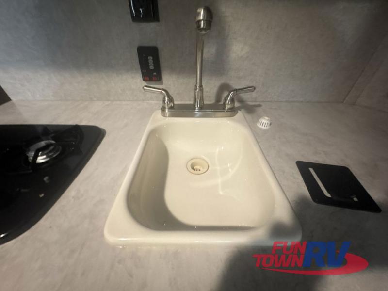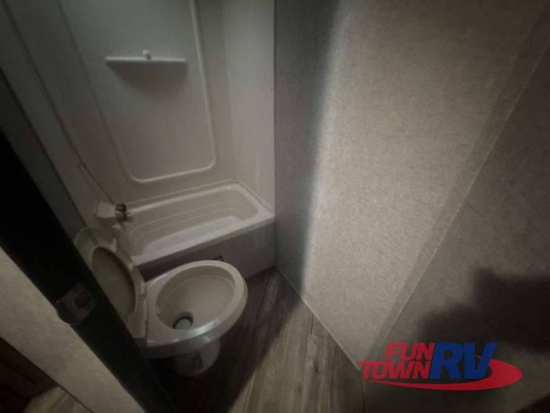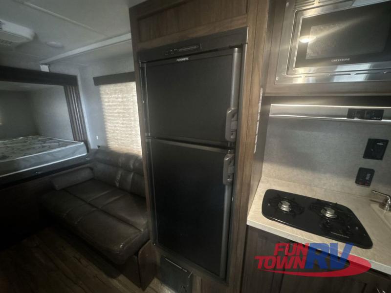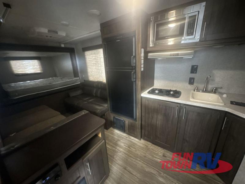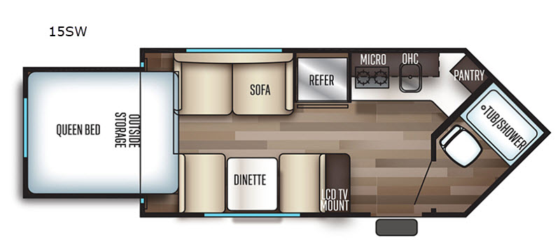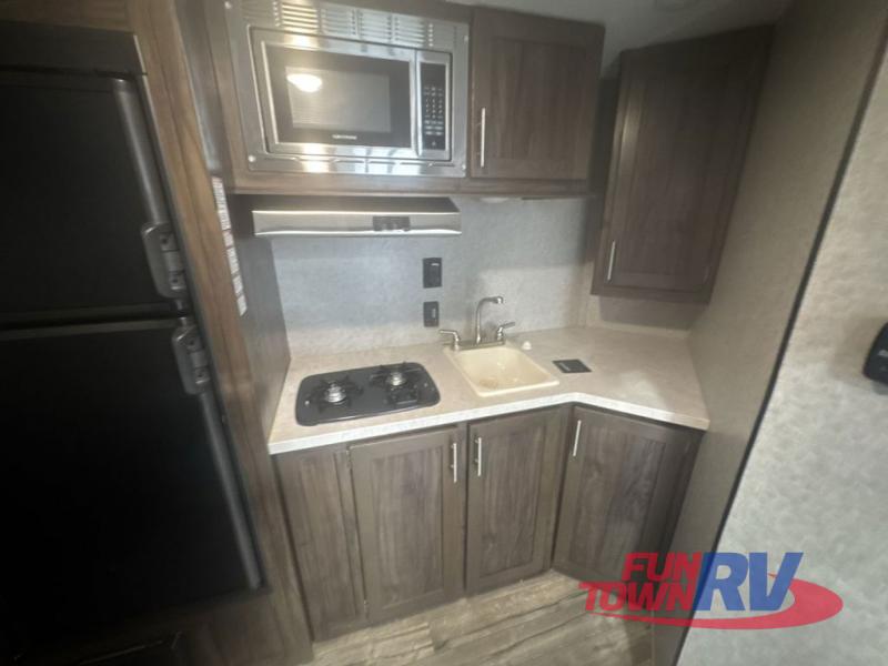 The next time you are in the market for a travel trailer, choose this Cherokee Wolf Pup. The v-nose design allows for better aerodynamics as well as gives you more floor space. This unit features a rear slide out with a queen bed to stretch out on after a long day of exploring. You'll love being able to visit with family on the sofa or share a meal at the dinette. With an overhead compartment and a pantry in the kitchen, you'll have plenty of room for all your dry goods and don't forget the outside storage for larger items! This model also includes a bath with a tub and a shower for easy clean-up. Make your next camping trip great with this Cherokee Wolf Pup travel trailer!
