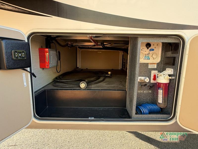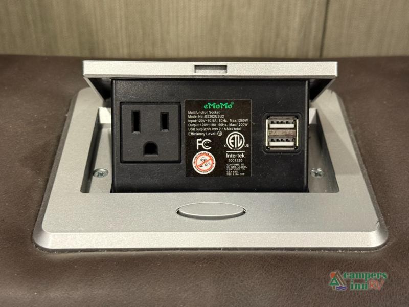 Outside speakers, AM/FM/Bluetooth receiver, USB ports.