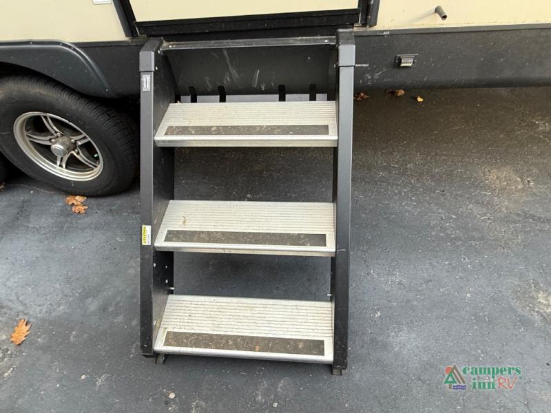 As you step inside this unit you will experience camping like never before! Just imagine a rear private bedroom with a queen Serta bed, nightstands on either side, and plenty of wardrobe space so that you can be dressed for any occasion. The double entry doors make for a smooth flow of traffic in and out of the unit. The best way to wind down your night is by grabbing a drink and lying back on the 67" hide-a-bed sofa in front of the cozy fireplace. If you want to experience the outdoors to its fullest, then get a camp chair and sit back underneath the 21' power awning with an LED light strip!