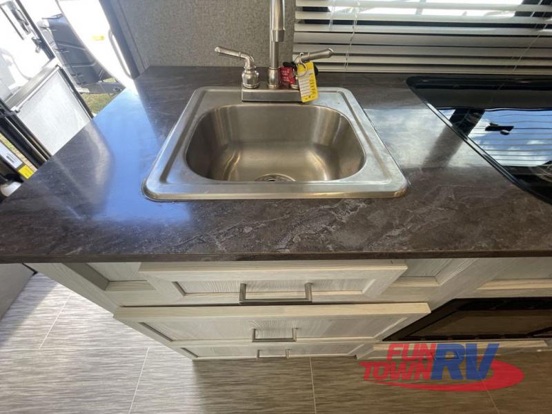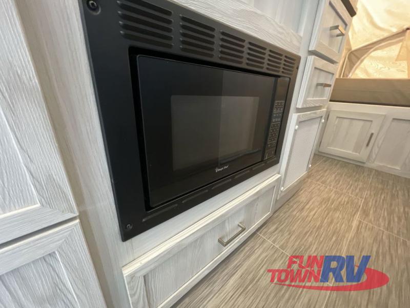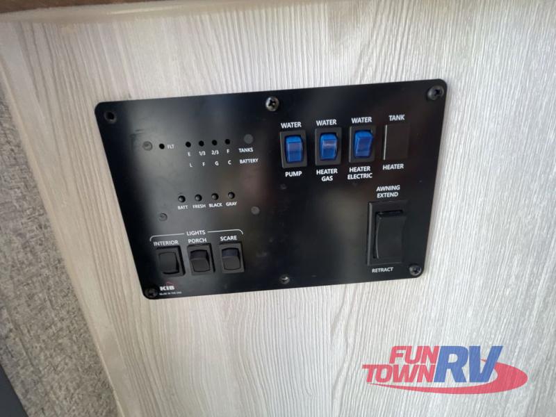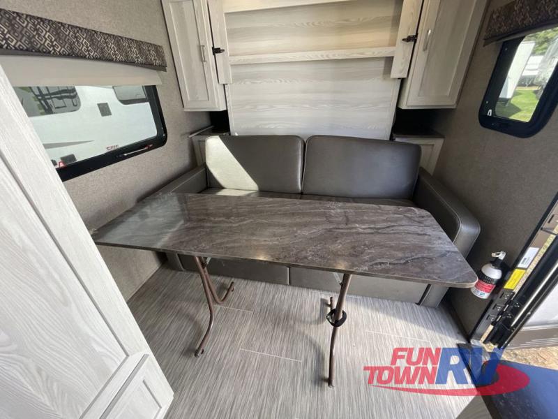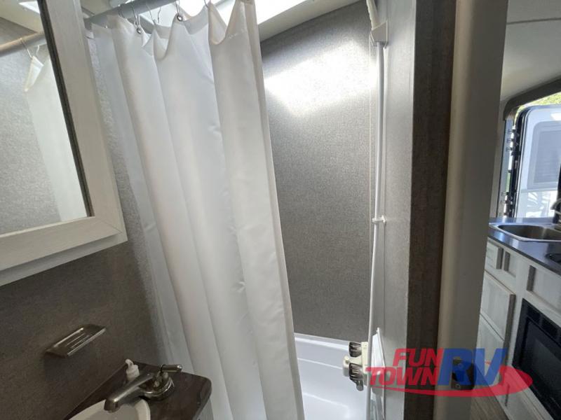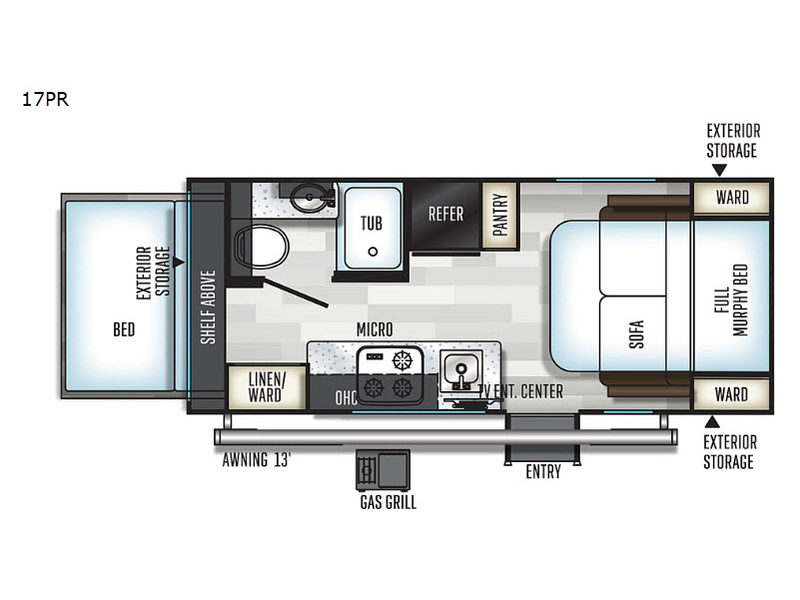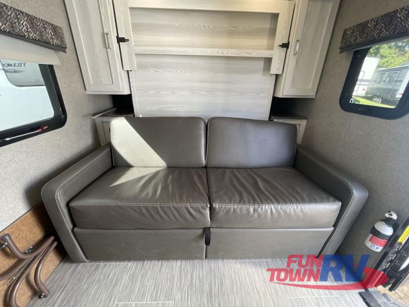 Ready, set, camp! For the camping enthusiast this Flagstaff E-Pro travel trailer is ideal for you and your family! You get to choose if you want to sit on the sofa or sleep on the Murphy bed whenever you like. You also have a queen bed in the rear for the kids or extra guests. The rear full bath allows you to wash up after a fun day outdoors without having to use the campsite facilities. You can cook inside on the recessed cooktop with flush-mount cover and in the microwave or outside on the gas grill. You also have plenty of storage options with the kitchen pantry, linen/wardrobe across from the bath, dual wardrobes in the front, and the exterior storage.