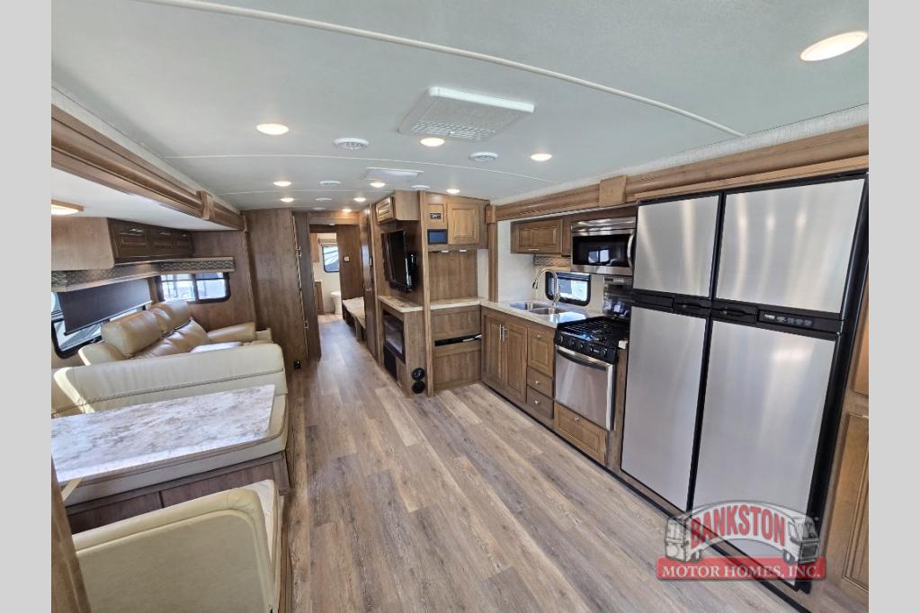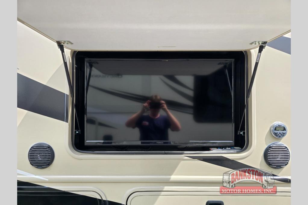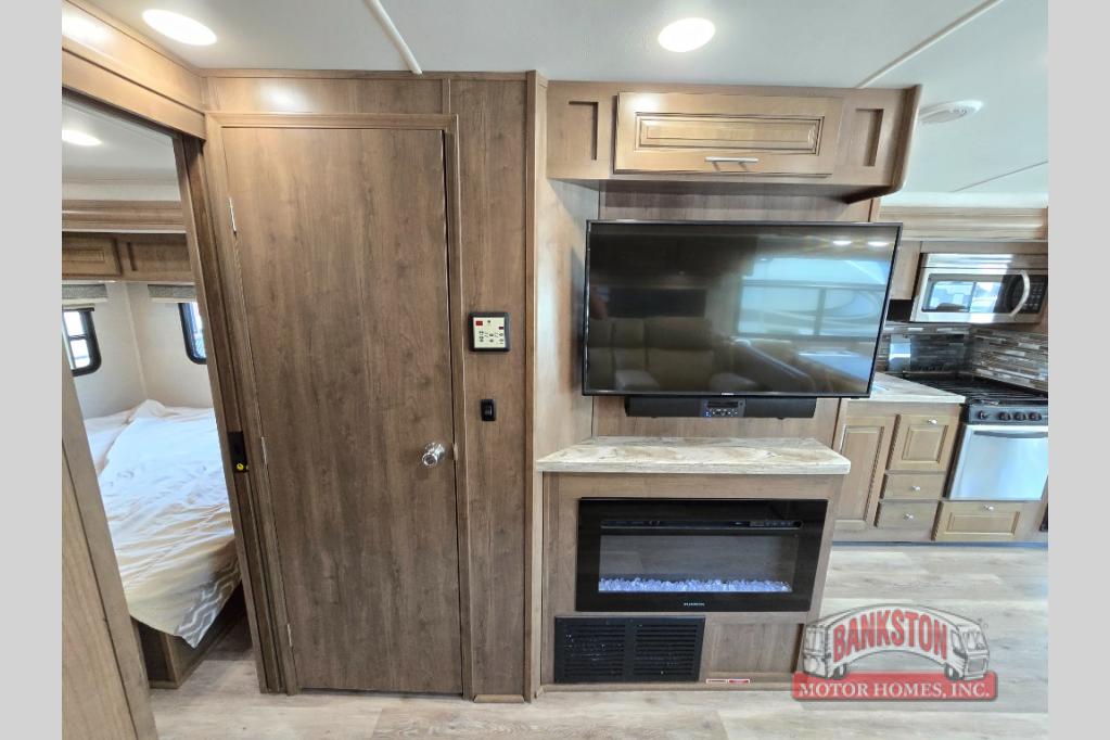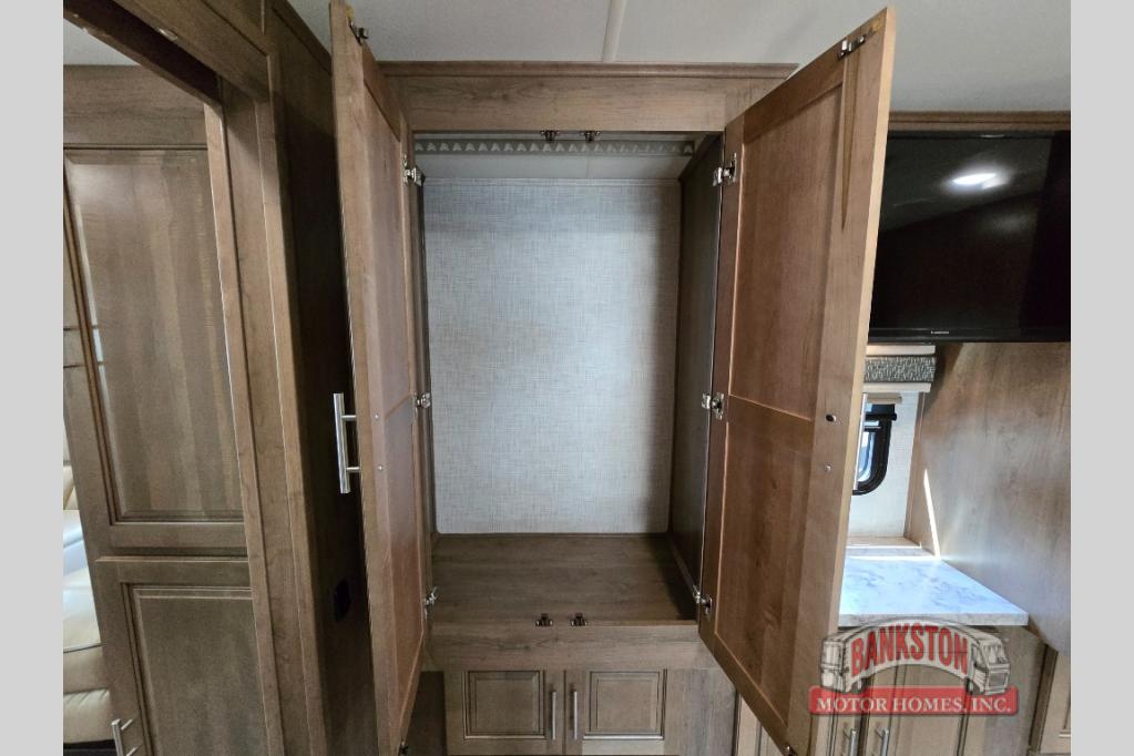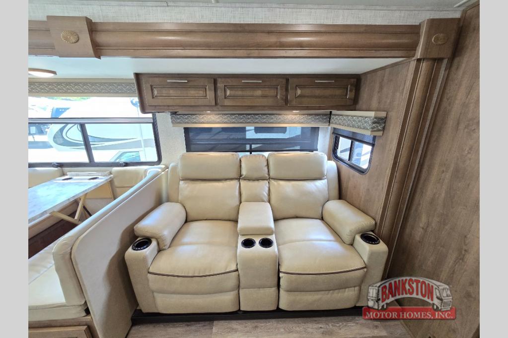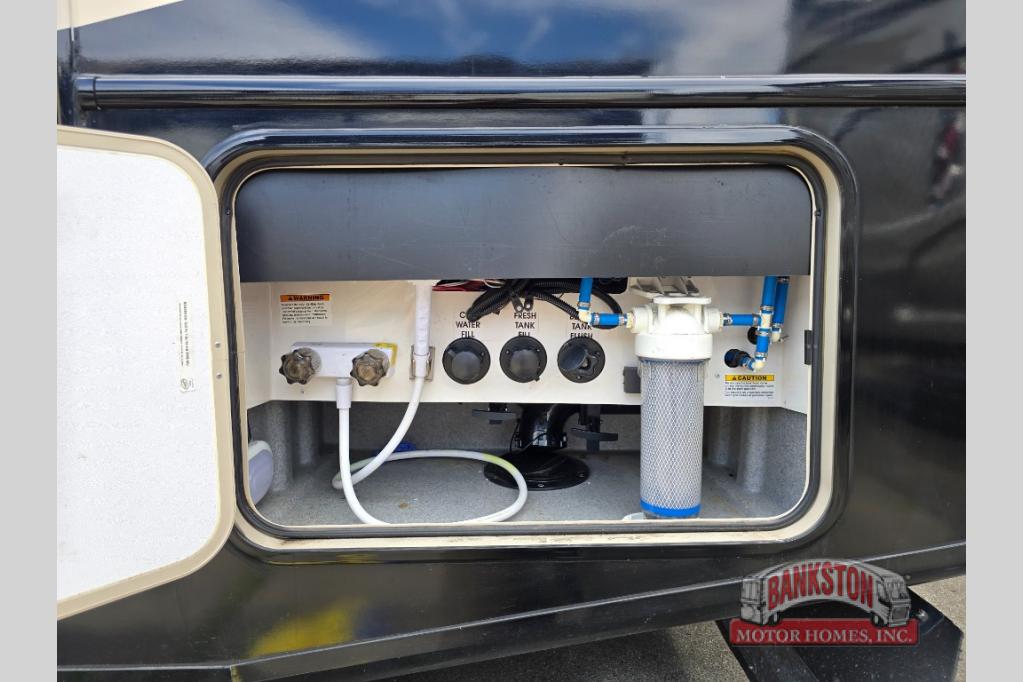 It's time for you to enjoy your road trips in true comfort! Check out this Forest River Georgetown 5 Series 34H5 class A motorhome. You won't be disappointed with all of the features it has to offer like the full and half baths, the passenger work station, the 32" LED bedroom TV, and the 40" LED main TV. Another feature you are sure to love is the rear private bedroom. Here you will find access to your own private bathroom, a king bed with nightstands on either side, and even a wardrobe that is prepped for the optional washer/dryer. The luxurious features don't stop there! There is also a fireplace with theater seating directly across from it, and the seating even has cup holders so that you don't spill your drinks.
