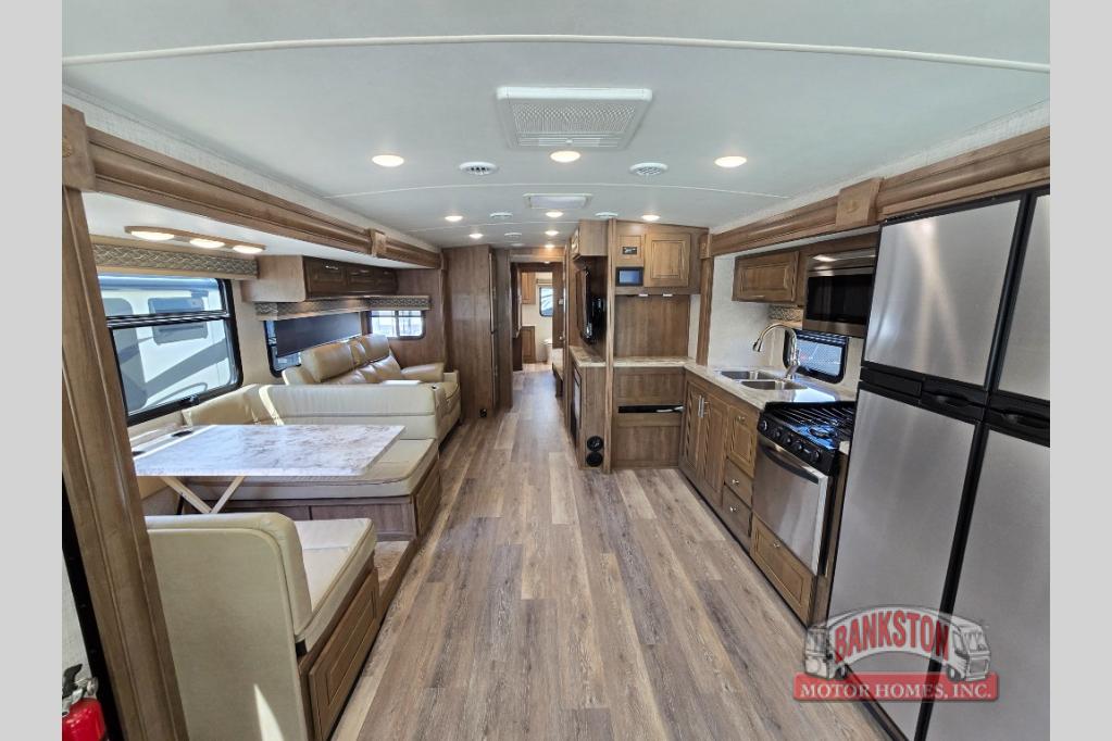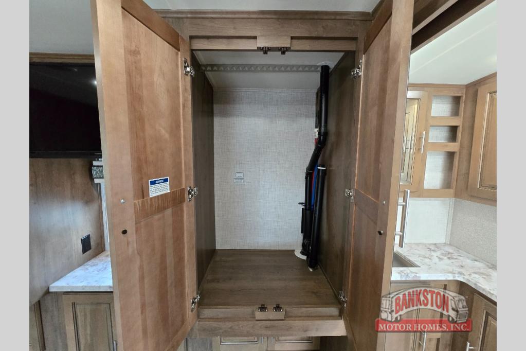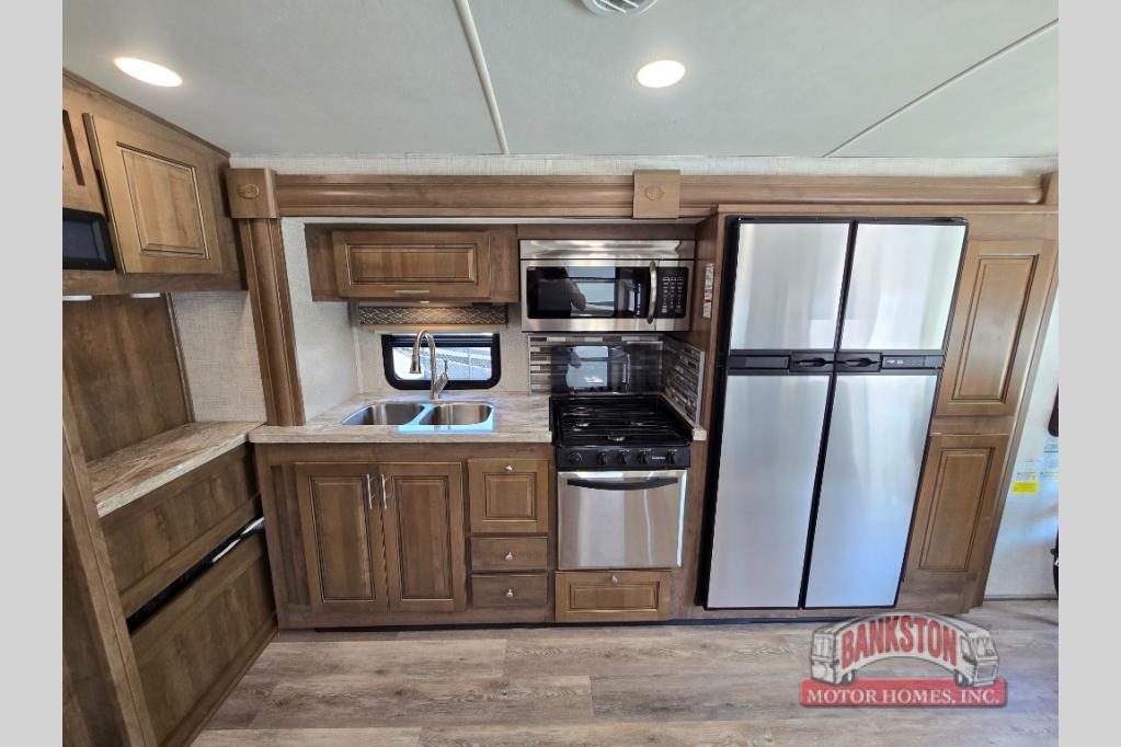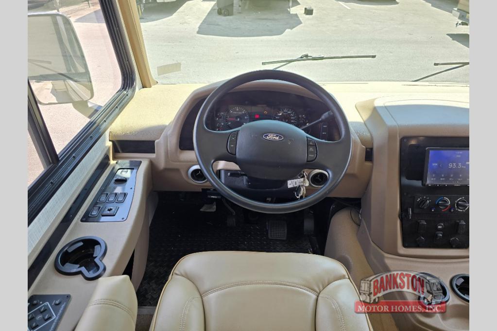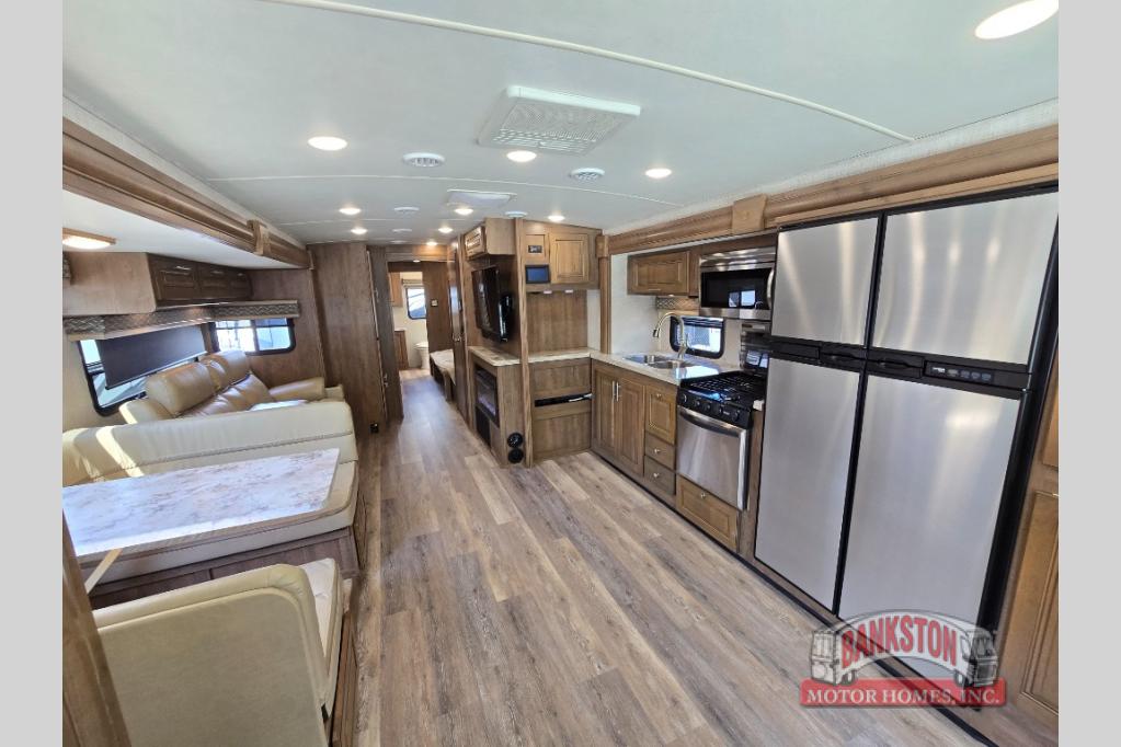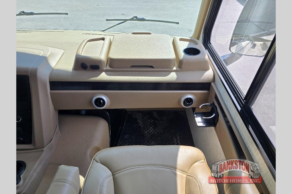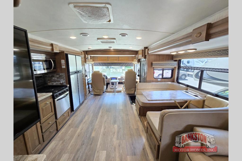 It's time for you to enjoy your road trips in true comfort! Check out this Forest River Georgetown 5 Series 34H5 class A motorhome. You won't be disappointed with all of the features it has to offer like the full and half baths, the passenger work station, the 32" LED bedroom TV, and the 40" LED main TV. Another feature you are sure to love is the rear private bedroom. Here you will find access to your own private bathroom, a king bed with nightstands on either side, and even a wardrobe that is prepped for the optional washer/dryer. The luxurious features don't stop there! There is also a fireplace with theater seating directly across from it, and the seating even has cup holders so that you don't spill your drinks.