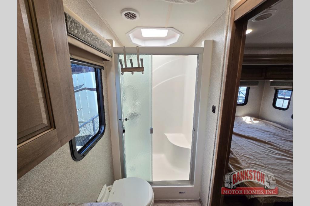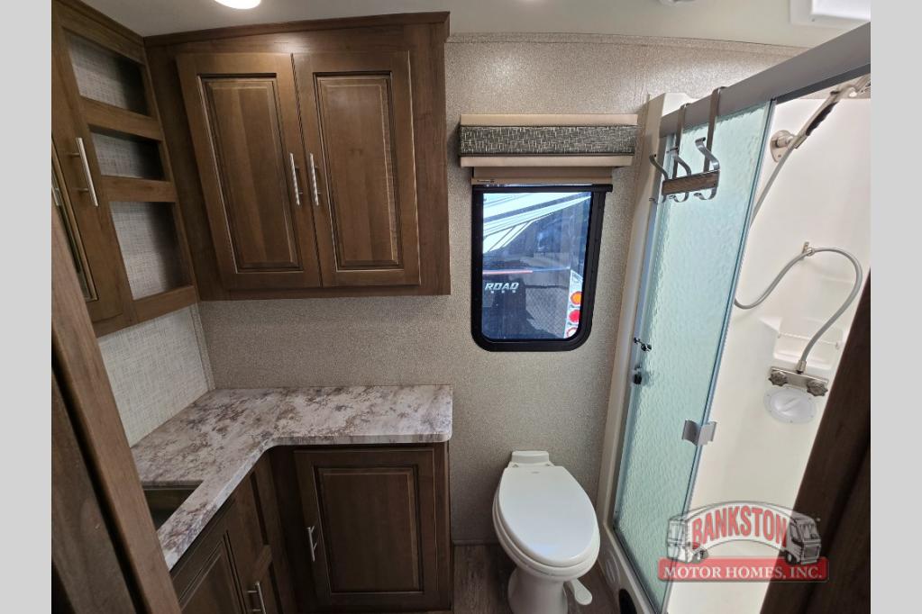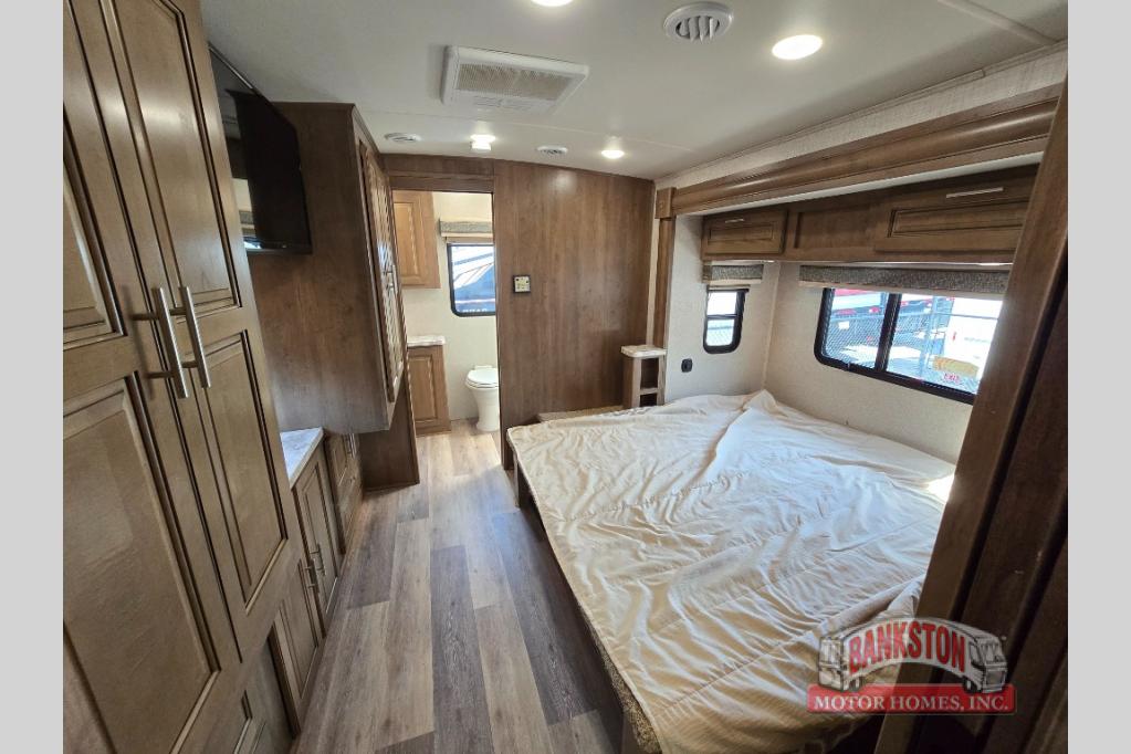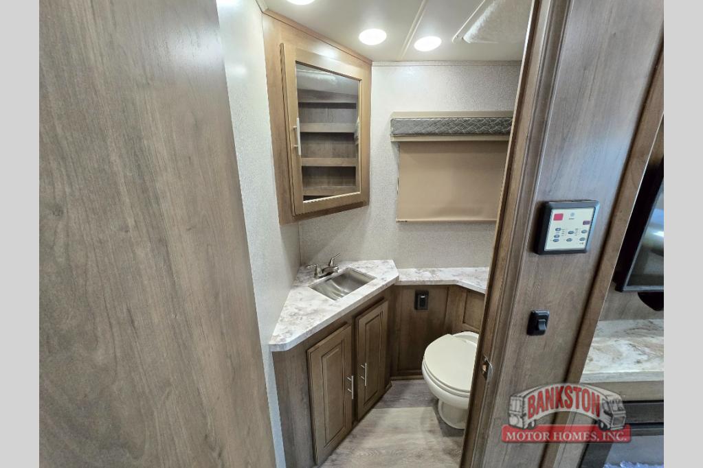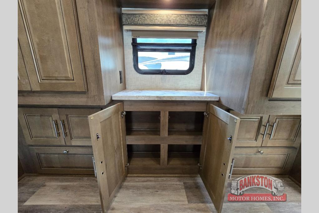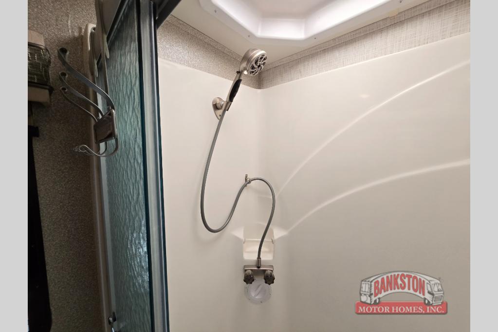 It's time for you to enjoy your road trips in true comfort! Check out this Forest River Georgetown 5 Series 34H5 class A motorhome. You won't be disappointed with all of the features it has to offer like the full and half baths, the passenger work station, the 32" LED bedroom TV, and the 40" LED main TV. Another feature you are sure to love is the rear private bedroom. Here you will find access to your own private bathroom, a king bed with nightstands on either side, and even a wardrobe that is prepped for the optional washer/dryer. The luxurious features don't stop there! There is also a fireplace with theater seating directly across from it, and the seating even has cup holders so that you don't spill your drinks.
