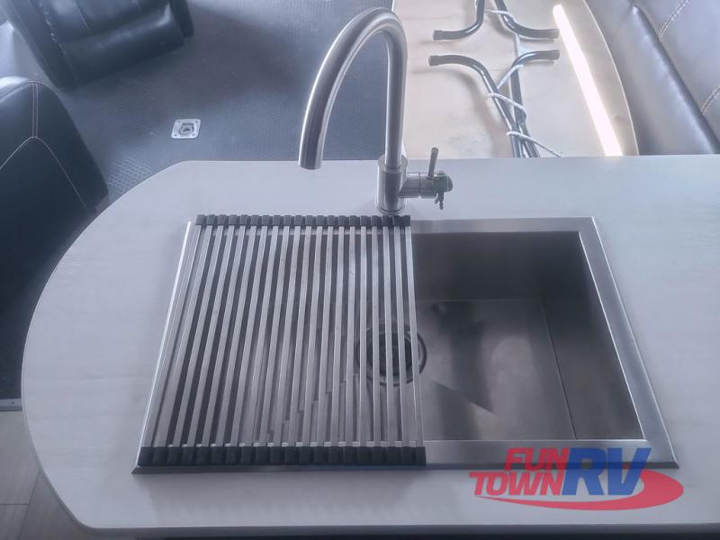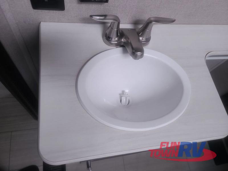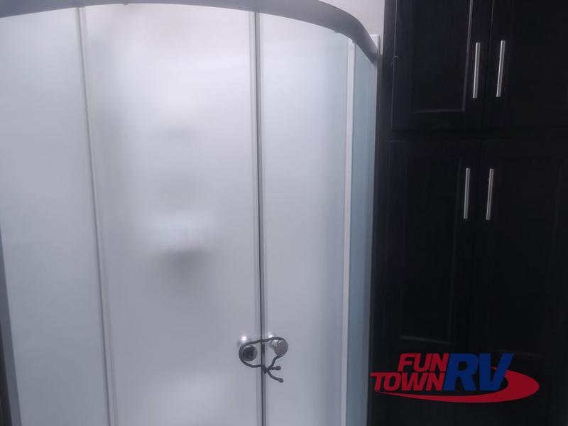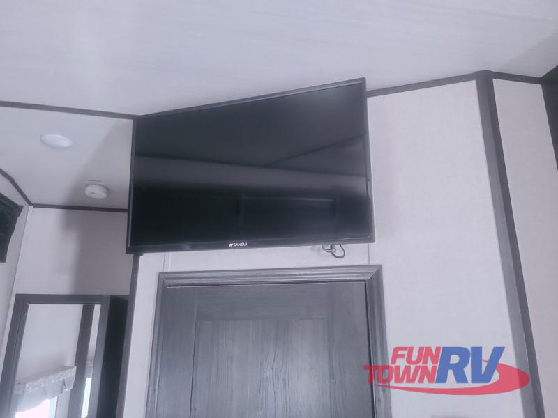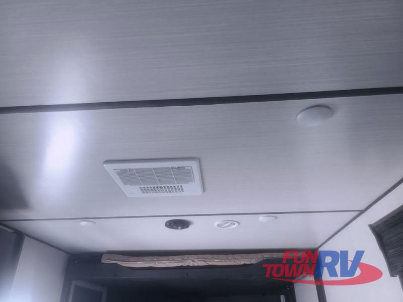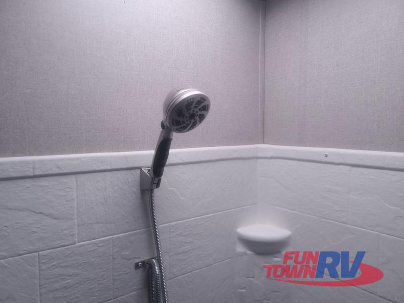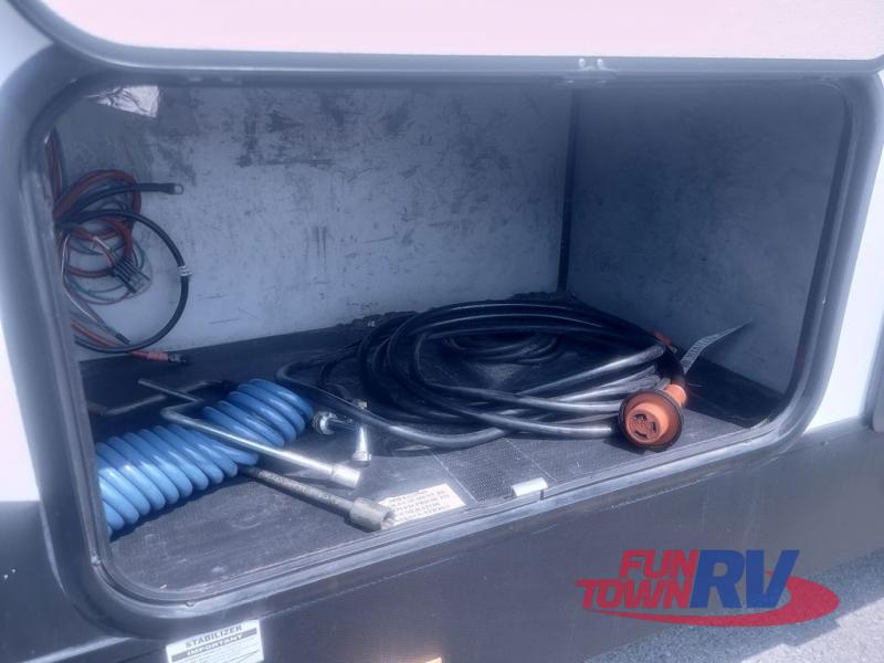 Looking for a travel trailer that will accommodate your toy hauling needs and your spouses desire for comfort and convenience? Then imagine having plenty of floor space to move around in this wide body toy hauler. The slide out adds even more walking around room, plus divides the flooring and full kitchen amenities including the residential HPL countertops and the 8 cu. ft. refrigerator from the living area. You can wait your turn to ride the toys while relaxing on the roll-over sofa, the two rockers or even the pass-through dinette with an electric bed above for nighttime. There is more to see! Come find out how you, your spouse, and your family can enjoy an active lifestyle without leaving the comforts of home behind!