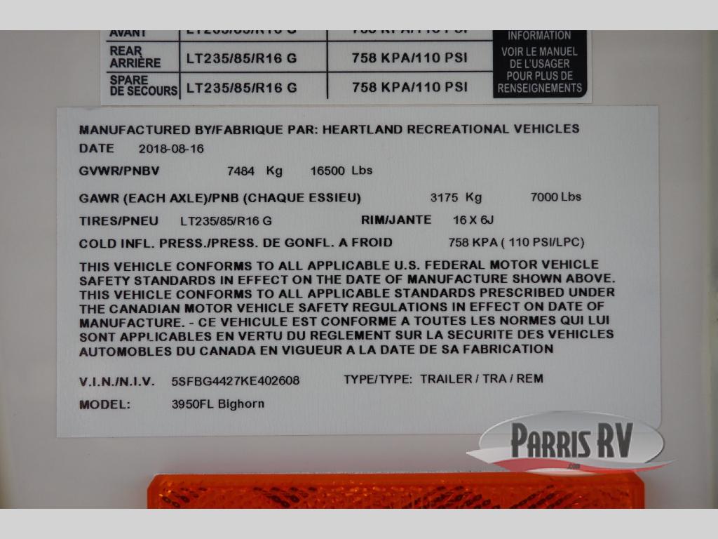 Heartland Bighorn fifth wheel 3950FL highlights: