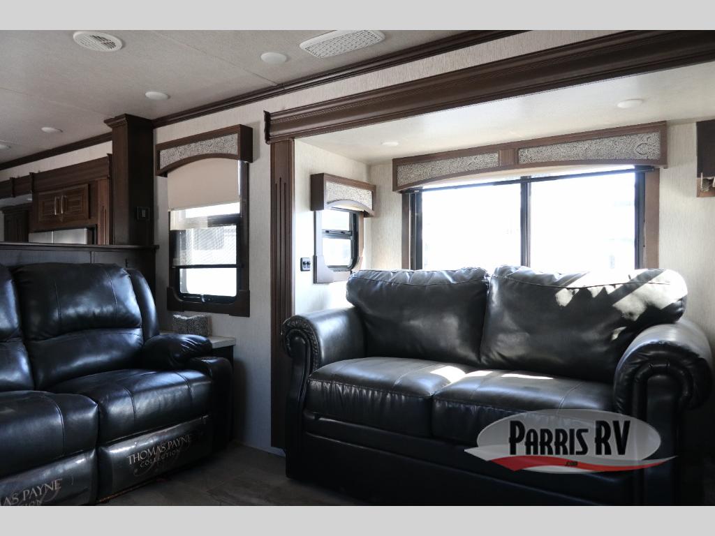 When you are ready for a change from the hustle and bustle of life, then camp with this spacious Bighorn fifth wheel! From the minute you enter, you will be impressed with the comforts from the front entertainment center and living area with a 55" LED HDTV, and the dual sofa slide outs to the theater seating. The kitchen has an island with a double sink and extra counter space plus additional storage and lighting. Located off of the kitchen there is a convenient half bath for your guests and those quick trips. The master walk-through bedroom includes a king bed and a space prepped for a washer and dryer if you choose to add that option. The rear full bathroom is spacious and makes it easy to get ready for the day. Start your next weekend get-away or stay-vacation off right with this fifth wheel!