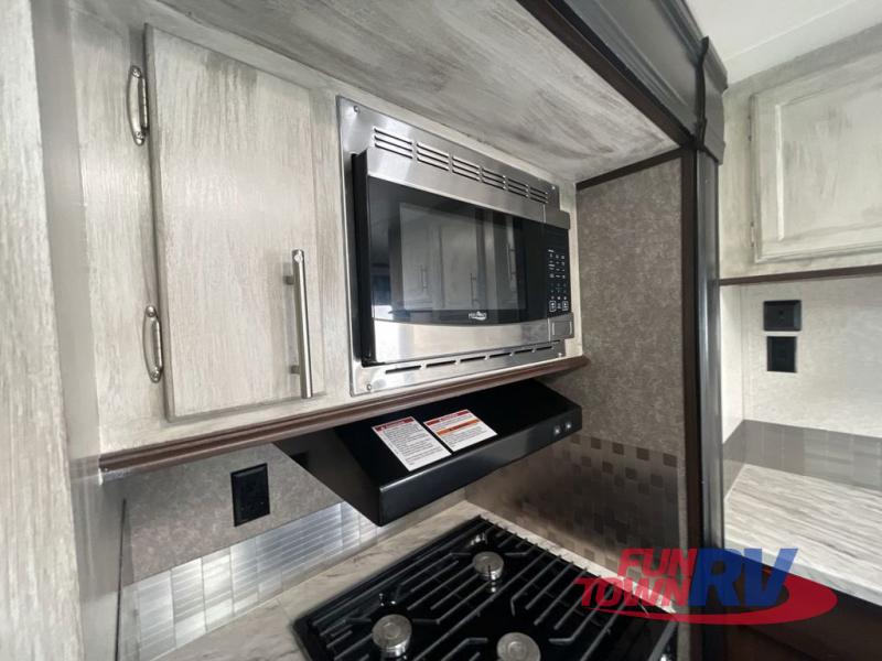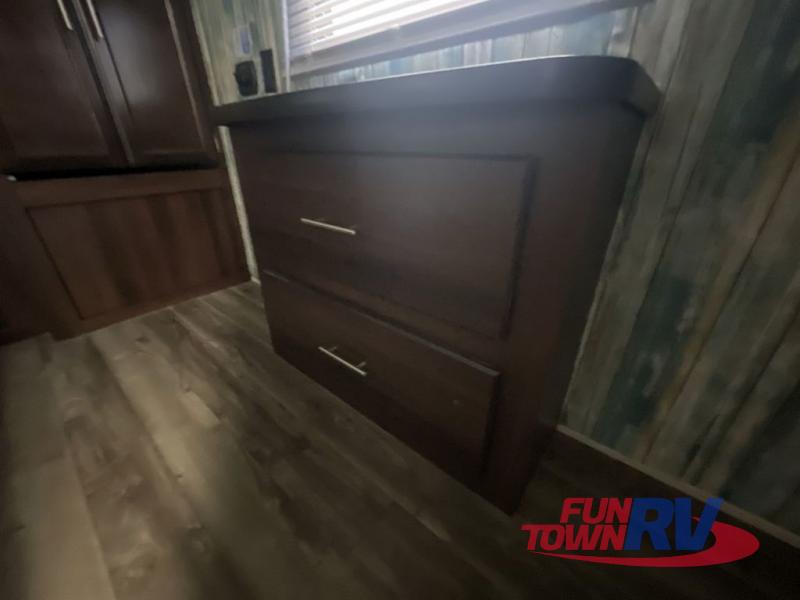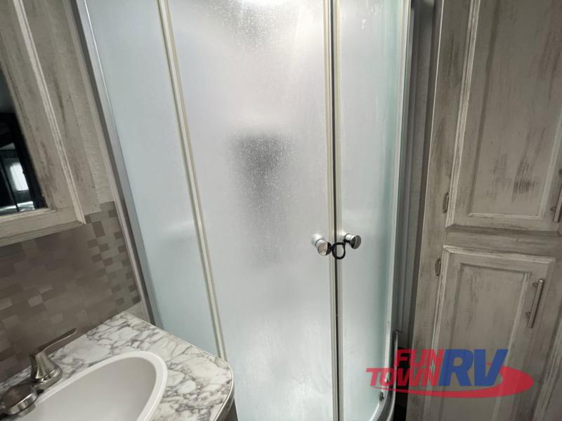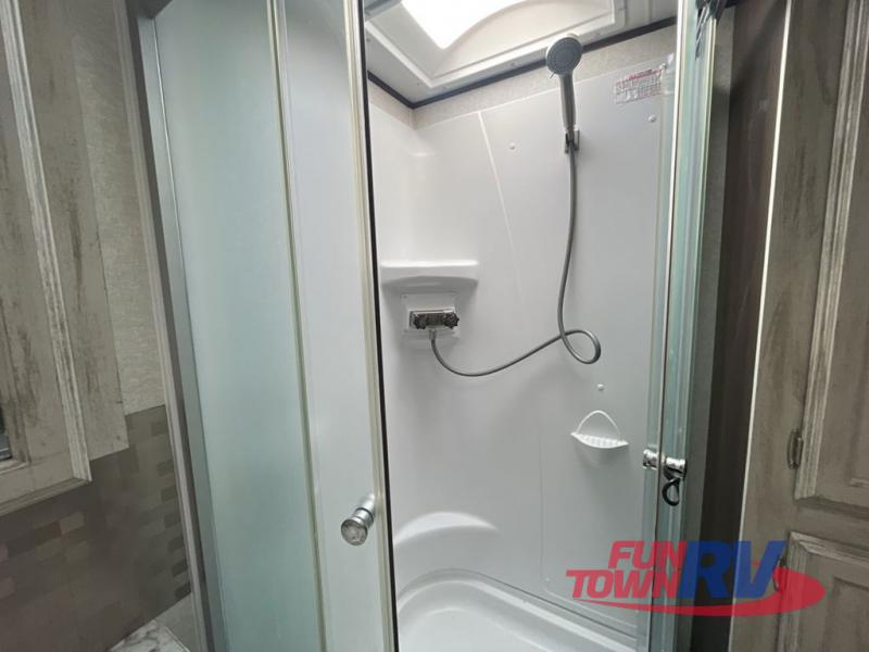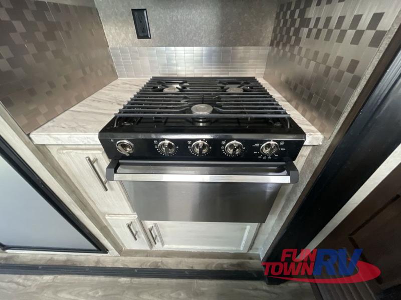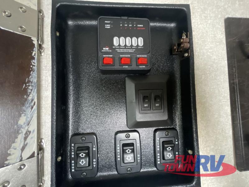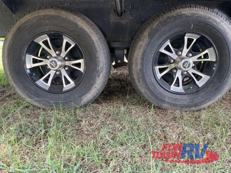 Can you picture yourself relaxing in the rear living area in this travel trailer? This model is perfect for a couple that enjoys plenty of space to invite other camper friends over or even the grandkids for a weekend away. The front master bedroom features a wardrobe, and a second entry into the bathroom. The main living and kitchen area includes dual slide outs for more floor space, theater seats, and additional furniture that will provide extra sleeping space for the overnight guests. You will love watching the big game or a show while staying warm from the fireplace. Stop picturing yourself, and start camping in this Jay Flight!