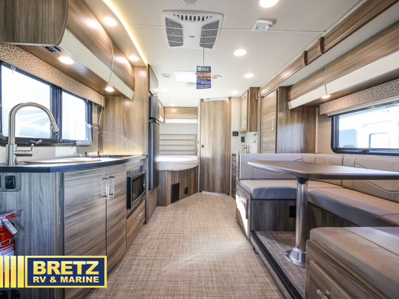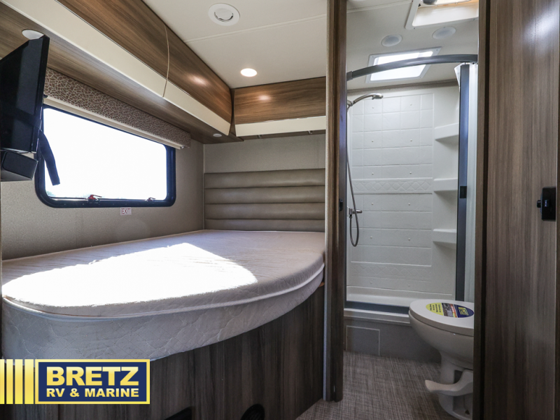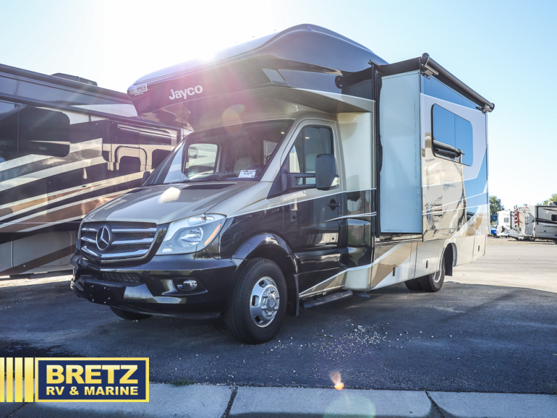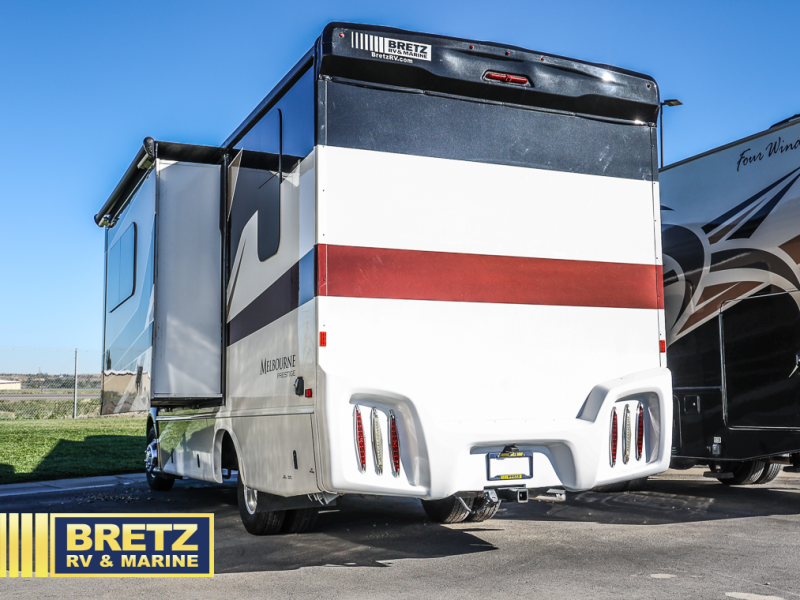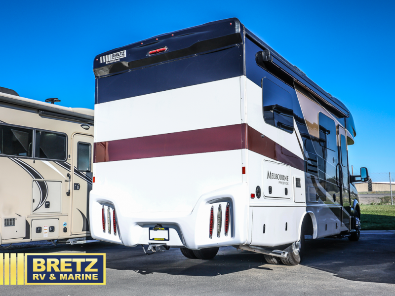 The Jayco Melbourne Prestige class C diesel motorhome offers luxury for the adventure enthusiasts. With its modern style and the automotive-bonded panoramic window in the front cap, the Soundstream Infotainment dash radio with GPS and a CD/DVD player, the remote control and heated mirrors, the backup camera with monitor, the 12V USB charging station, and the European-style curved cabinetry, this motorhome is going to impress everyone. Choose your favorite model today!