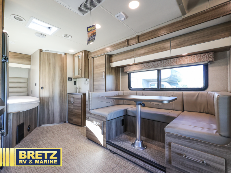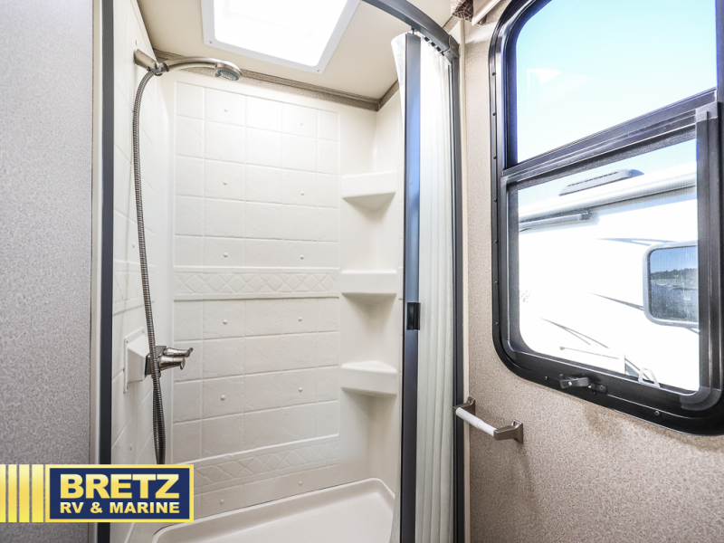 Been thinking about how you and your family can travel on vacation without having to stay in a hotel or eat at restaurants every night? Imagine having your own 50" x 80" bed, a cab-over bunk for the kids and extra sleeping space on the U-shaped dinette if needed. Now imagine riding down the road on comfortable Ultra leather captain's chairs while you listen to your kids laughing. Once at your destination you can swivel the chairs to face the kids, and make a meal in the convection microwave or on the cooktop. The private shower and toilet room will allow you to get cleaned up and ready for the next adventure while someone else is washing their hands in the bath sink that is just outside the door. This is the one, start vacationing tomorrow!