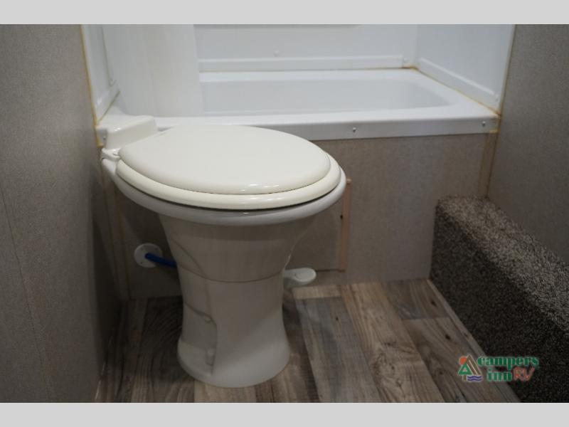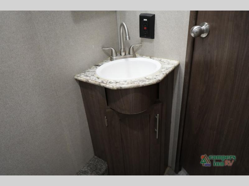 Rear Bathroom – Full privacy and convenience with ample room to get ready.