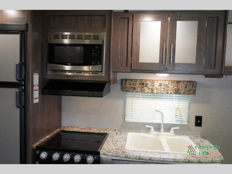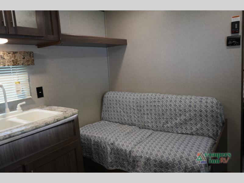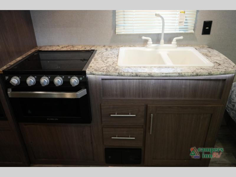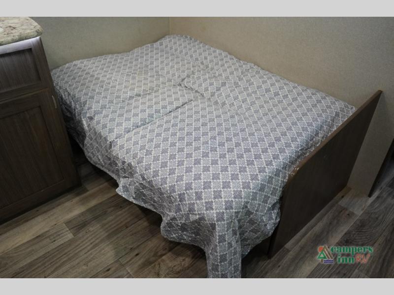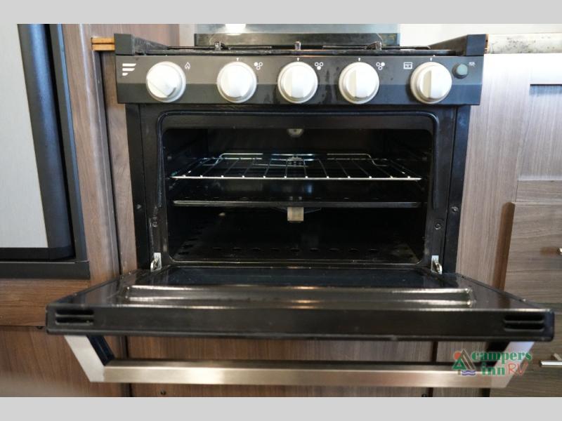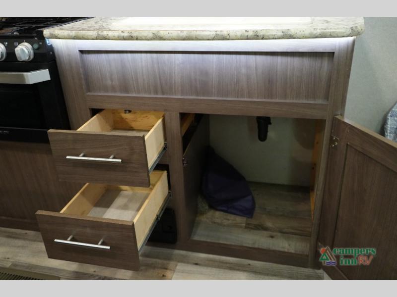 With thoughtful storage throughout — from overhead cabinets to full-strutted under-bed space — you’ll have room for all your camping gear, snacks, and outdoor essentials.