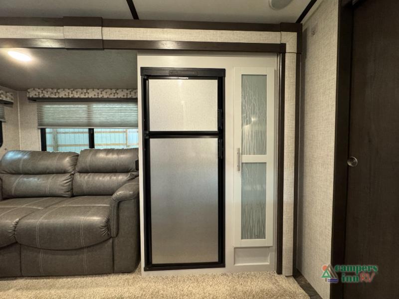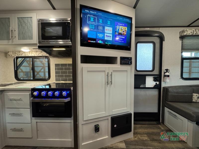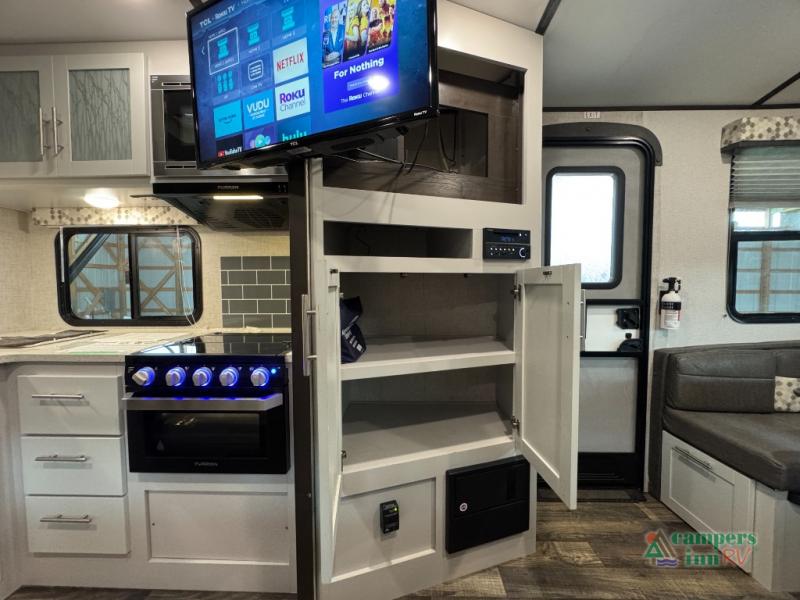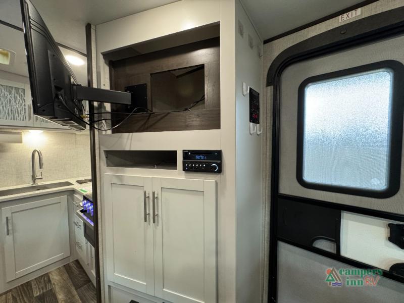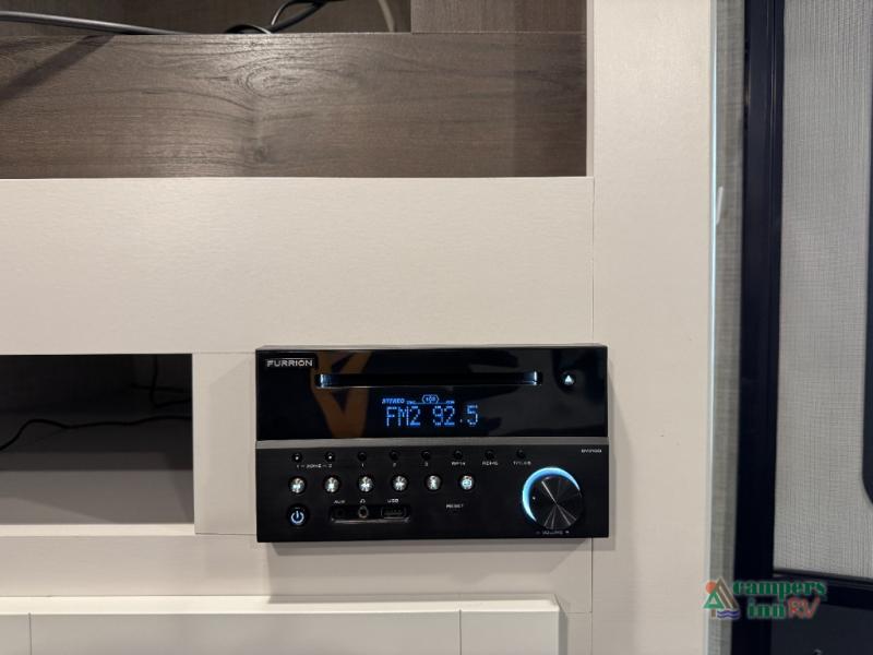 Stay entertained with the advanced entertainment system, featuring indoor and outdoor speakers. Whether enjoying a movie night inside or listening to music outside, this RV has you covered.