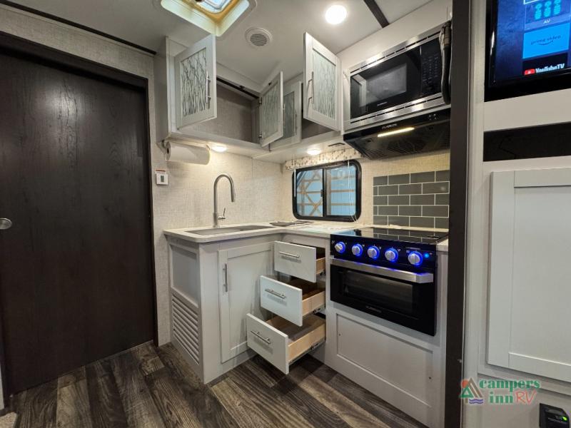 With pass-through exterior storage and multiple interior cabinets, the Premier 26UDPR offers plenty of storage for all your gear, from camping equipment to groceries, keeping you organized during your travels.