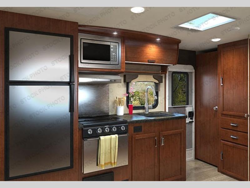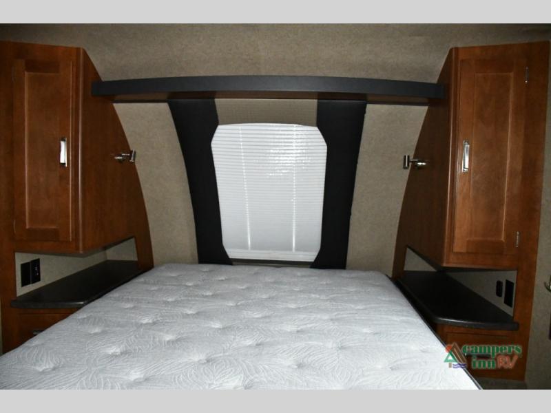 Step inside to find a thoughtfully laid-out interior that feels bright, airy, and functional. The walk-around queen bed provides comfort and flexibility, while the U-shaped dinette is perfect for family meals, board games, or even extra sleeping space for guests. The three-burner range allows you to prepare your favorite meals on the road, and the included bathroom mirror adds convenience to your morning routine.